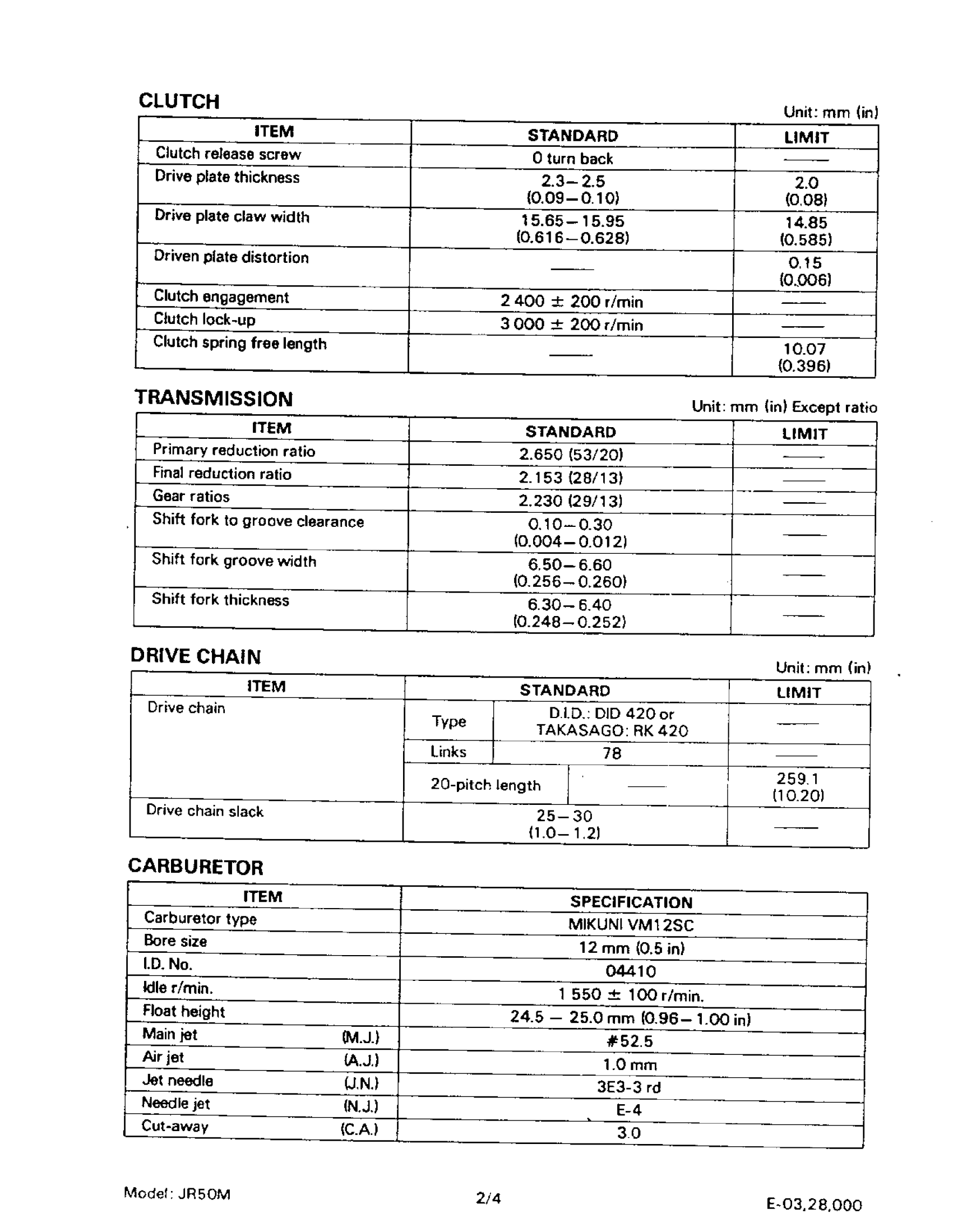 Suzuki JR50 (1987) SERVICE DATA Diagram