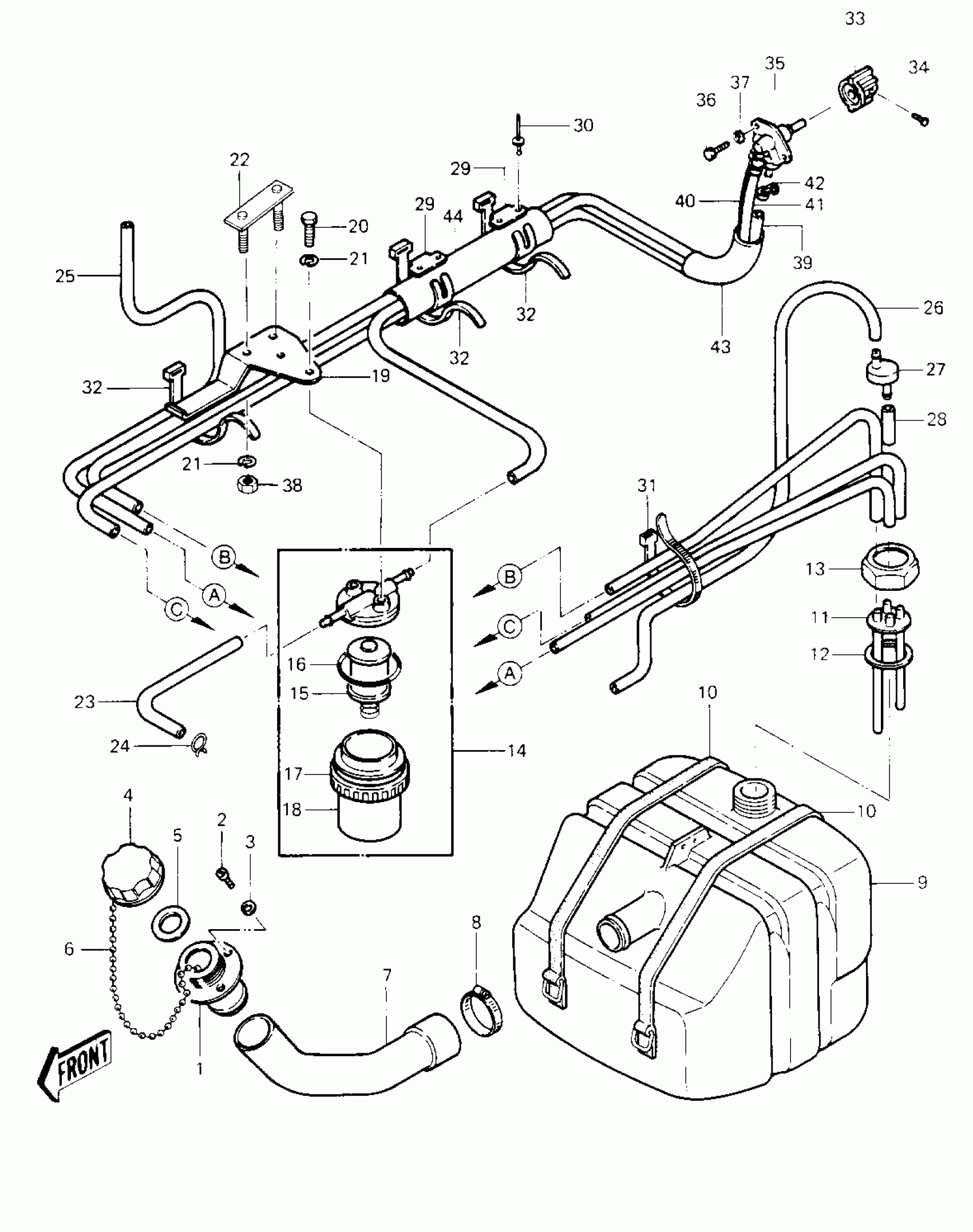 Kawasaki JS440 FUEL TANK ('84-'86 JS440-A8/A9/A10 Diagram
