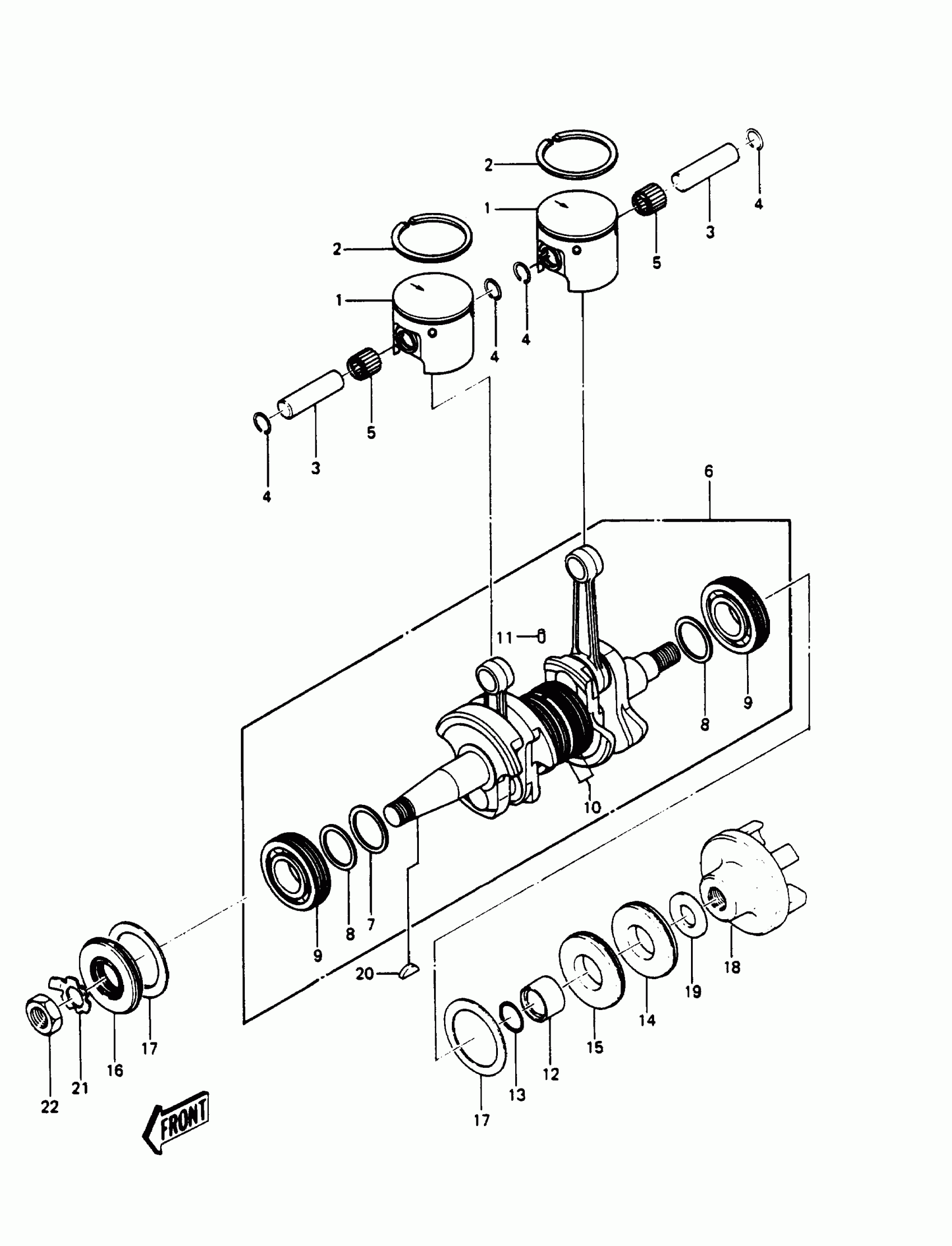 Kawasaki JS550 CRANKSHAFT/PISTONS Diagram