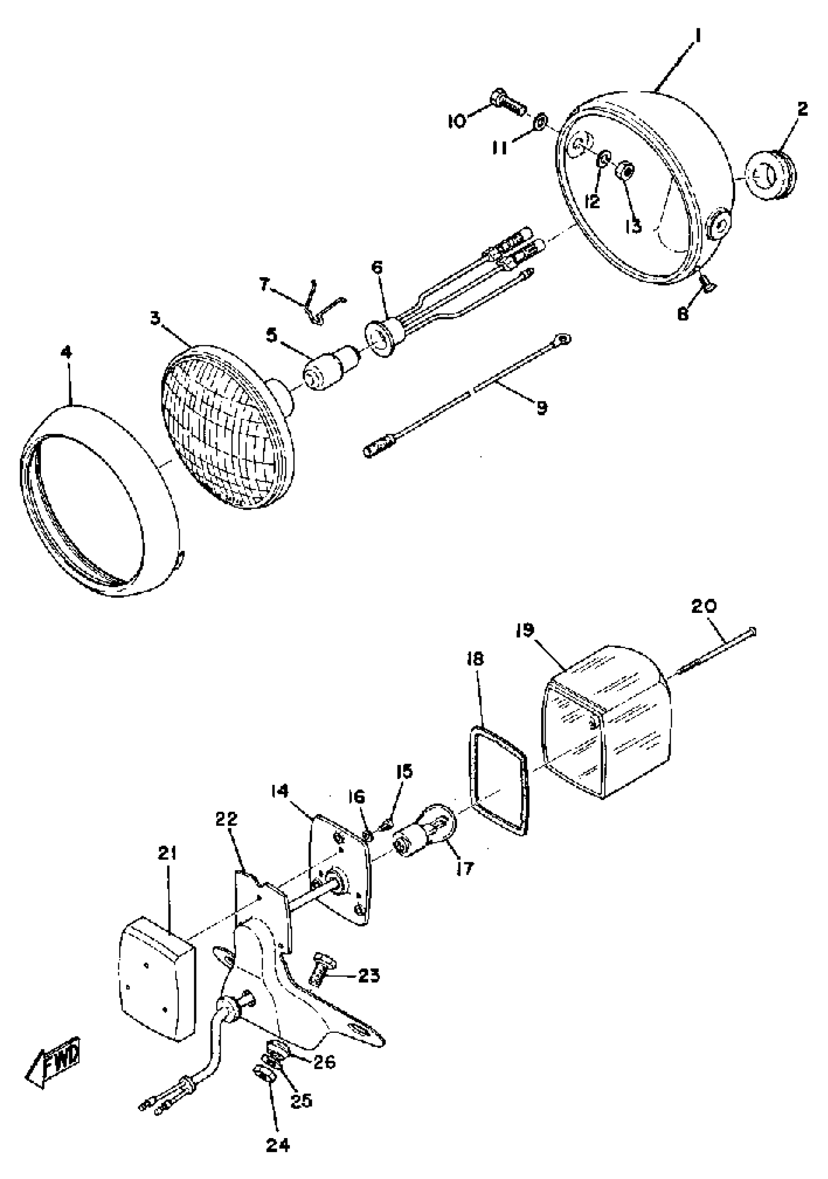 Yamaha JT1L (JT1_JT1L) 1971 HEAD LAMP & TAIL LAMP (JT1L) Diagram