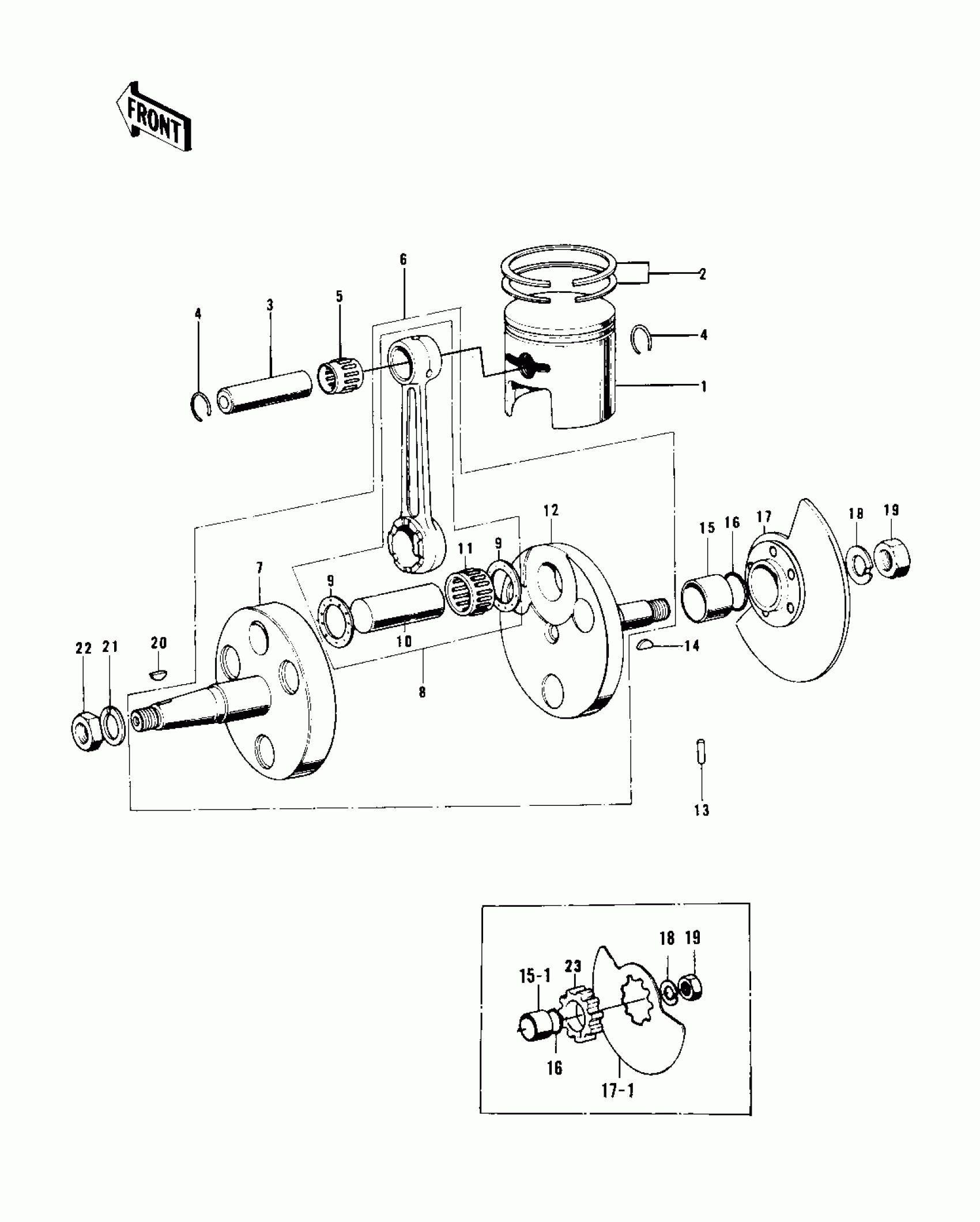 Kawasaki KD100-M4 CRANKSHAFT/PISTON/ROTARY VALVE Diagram
