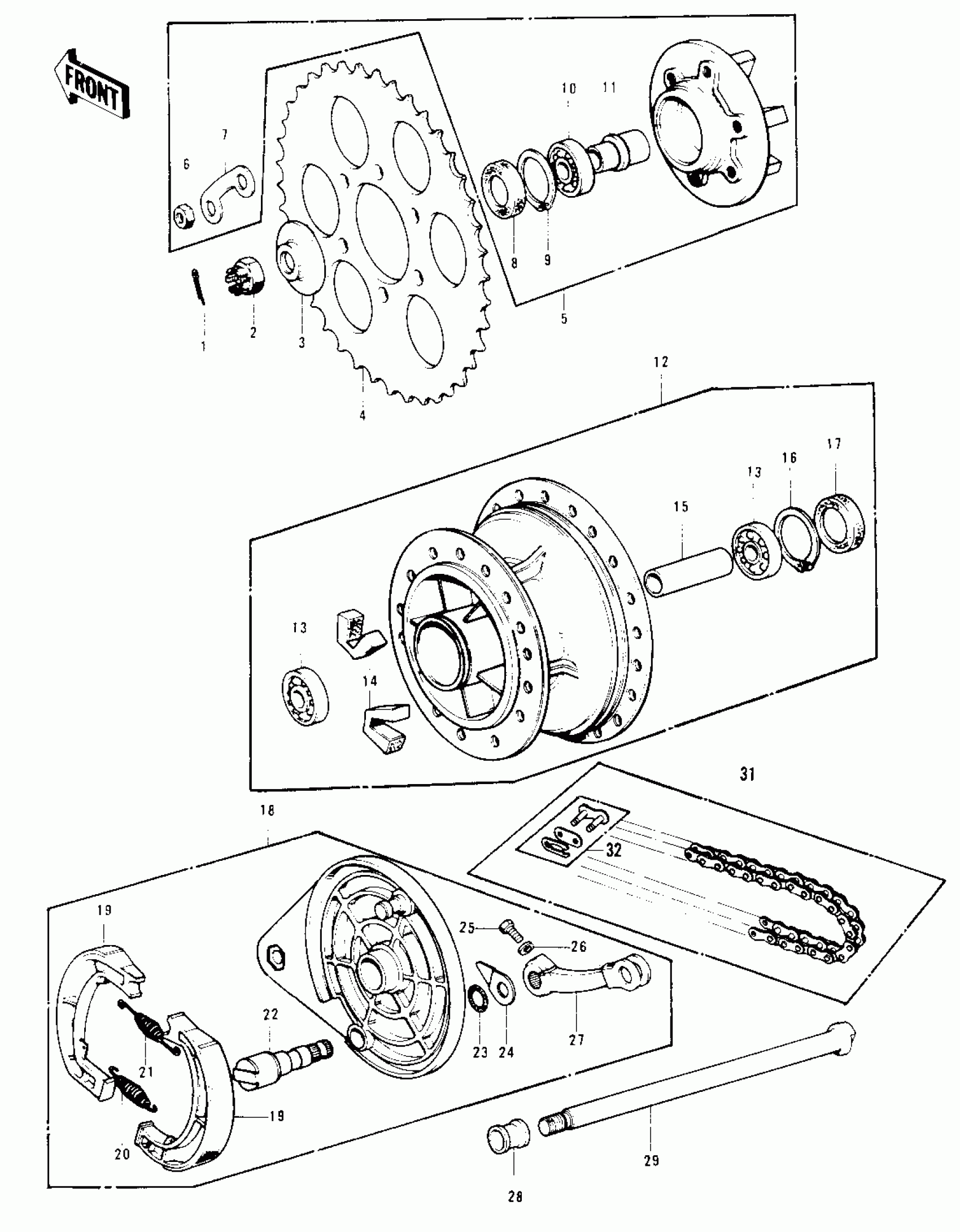 Kawasaki KD125-A5 REAR HUB/BRAKE/CHAIN Diagram
