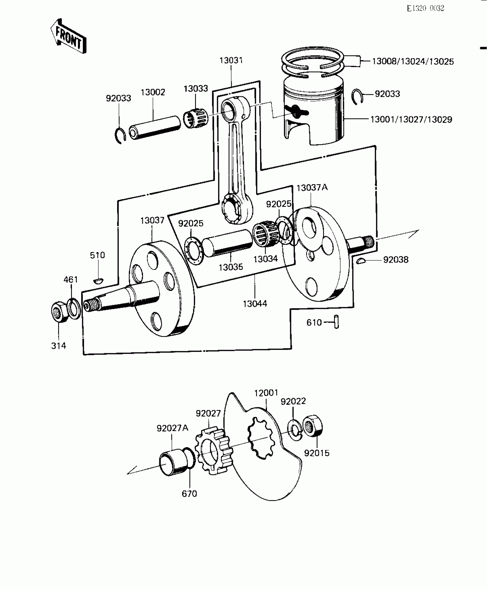 Kawasaki KD80 CRANKSHAFT/PISTON/ROTARY VALVE Diagram