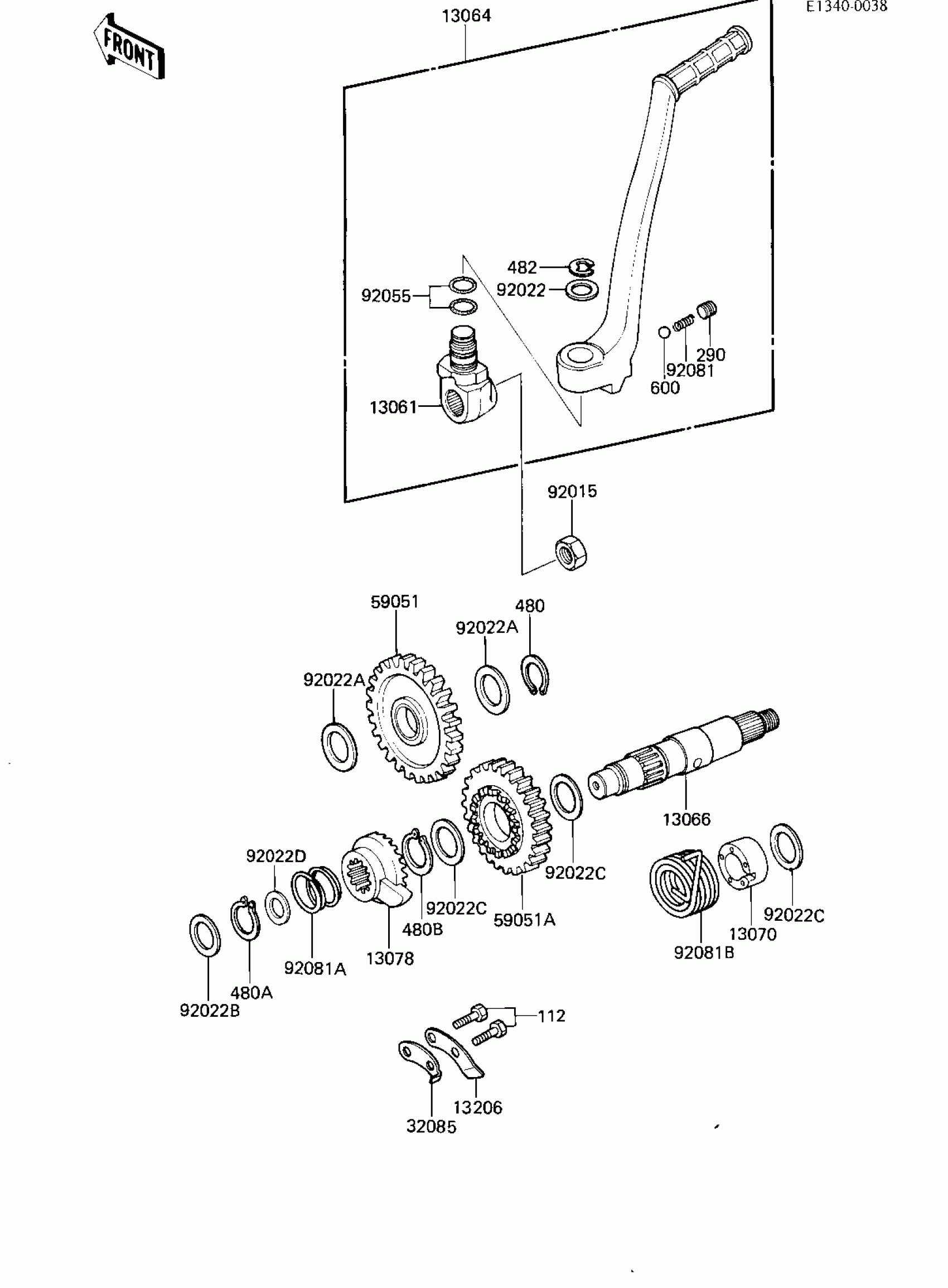 Kawasaki KDX200 KICKSTARTER MECHANISM Diagram
