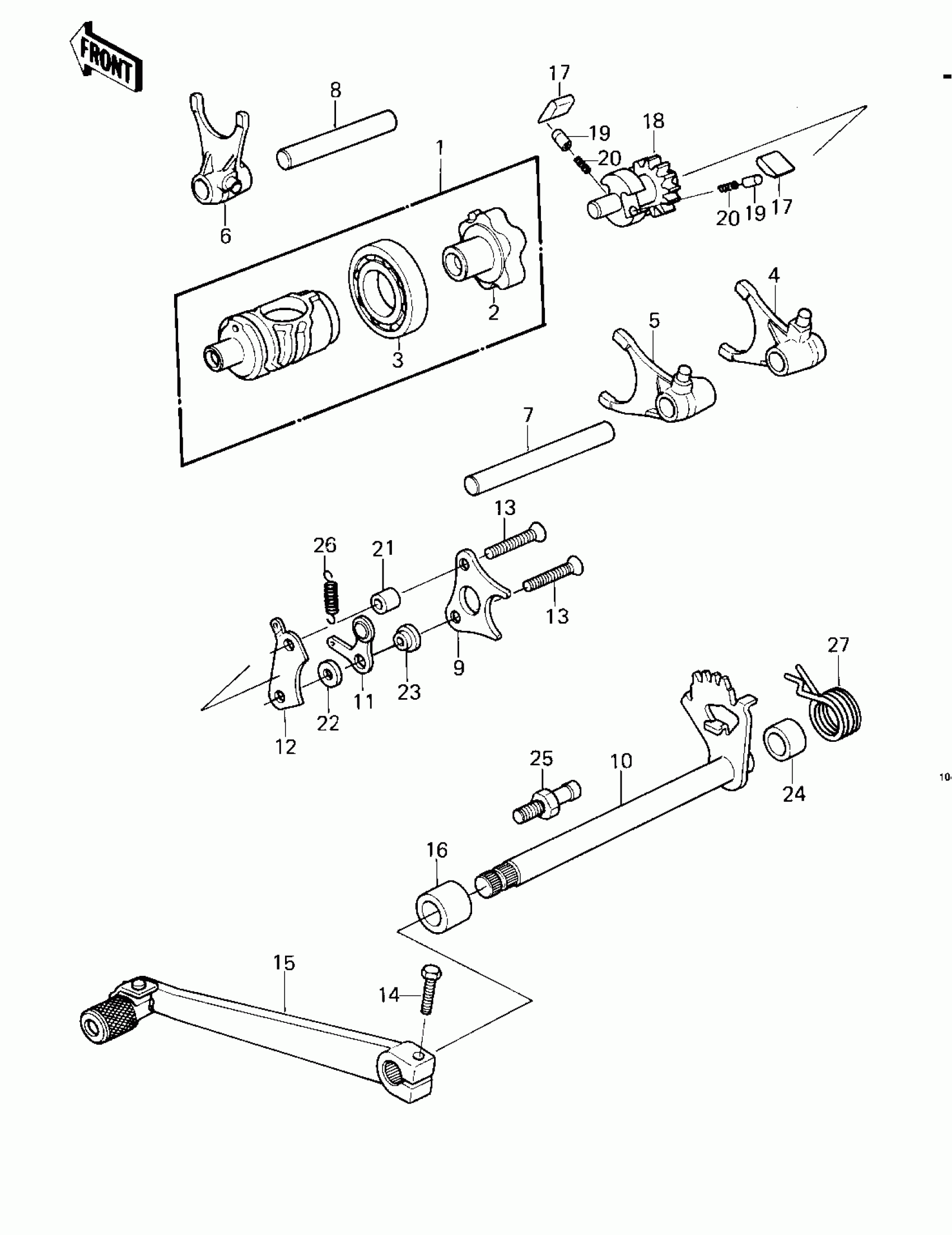 Kawasaki KDX250 GEAR CHANGE MECHANISM Diagram