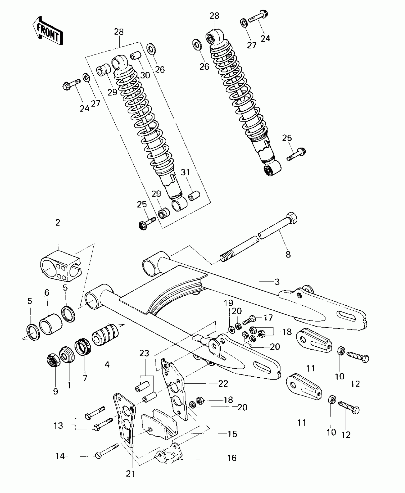 Kawasaki KDX80 SWING ARM/SHOCK ABSORBERS Diagram