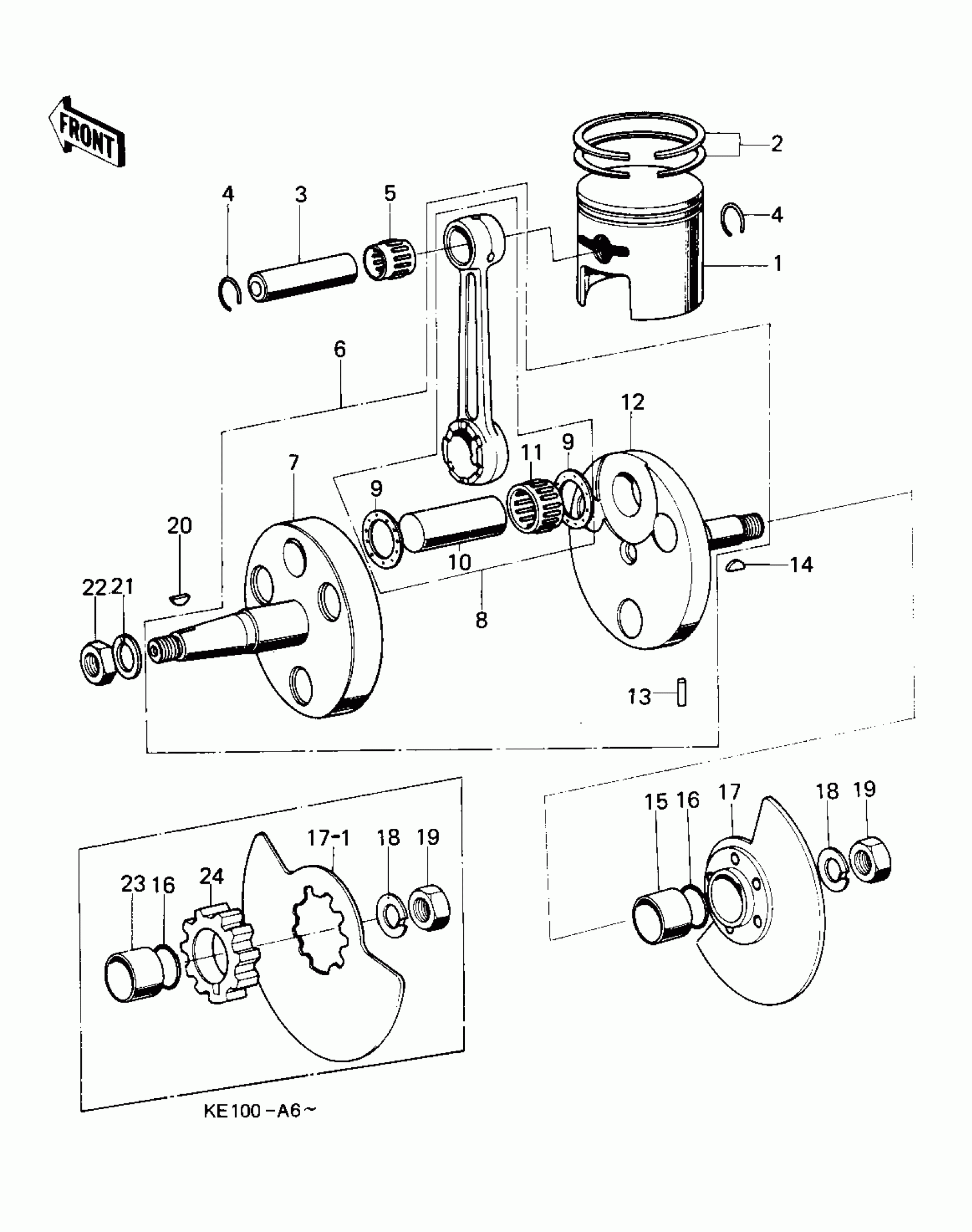 Kawasaki KE100 CRANKSHAFT/PISTON/ROTARY VALVE Diagram