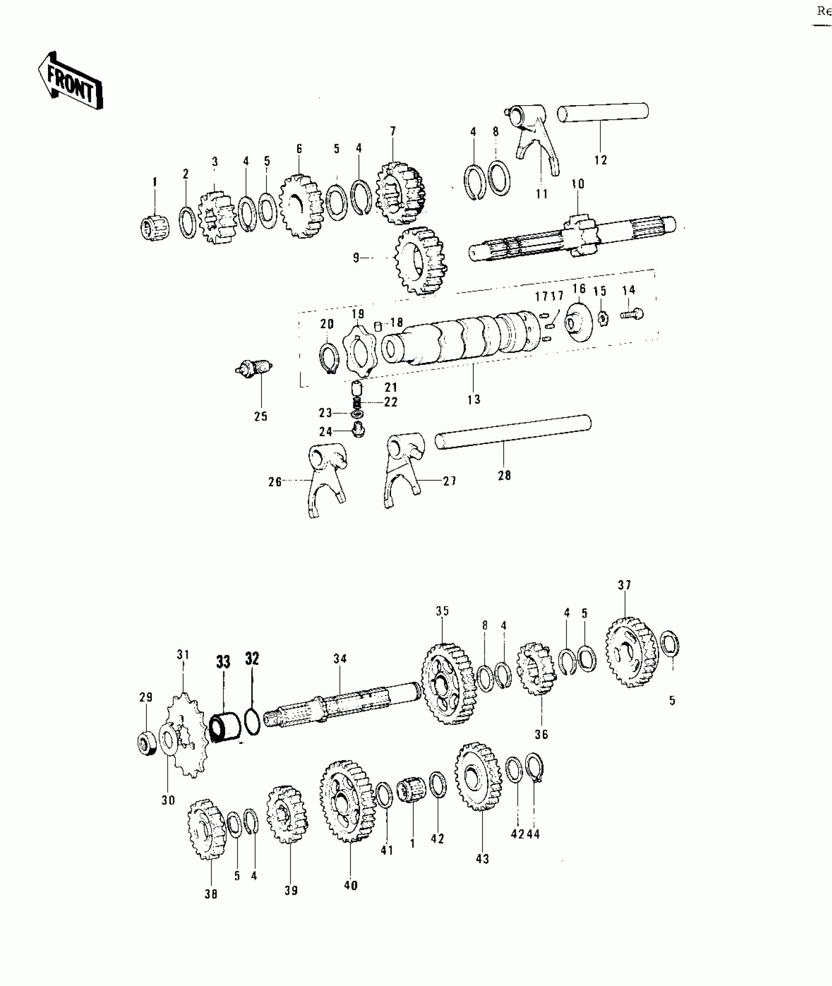 Kawasaki KE125 TRANSMISSION/CHANGE DRUM ('76-'79) Diagram