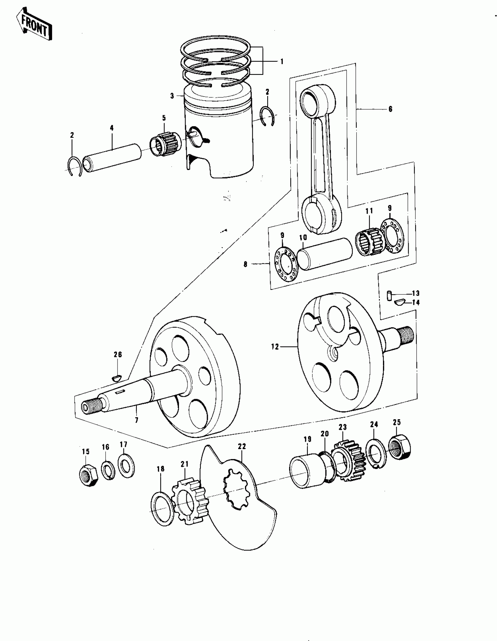 Kawasaki KE175 CRANKSHAFT/PISTON/ROTARY VALVE Diagram