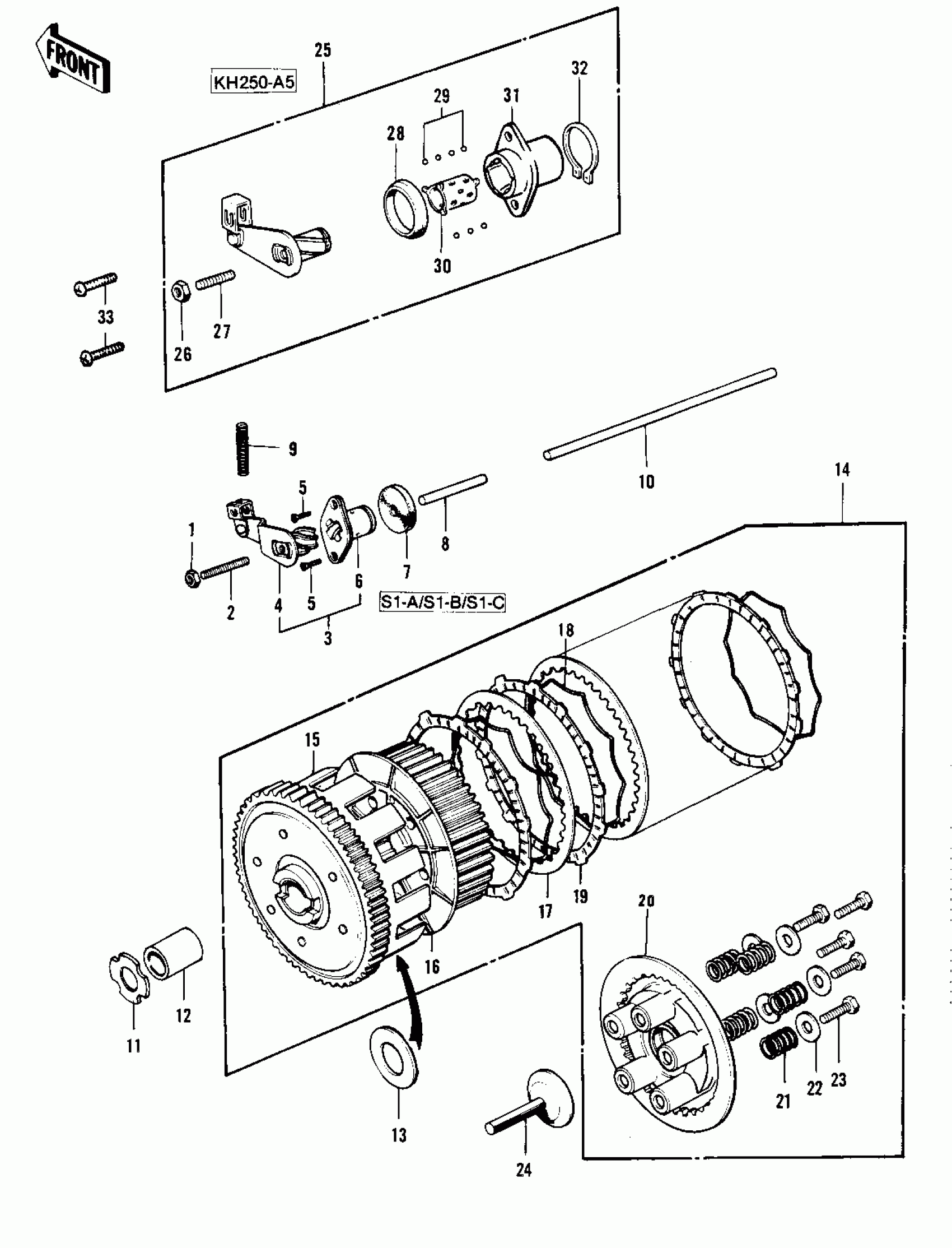 Kawasaki KH250-A5 CLUTCH Diagram