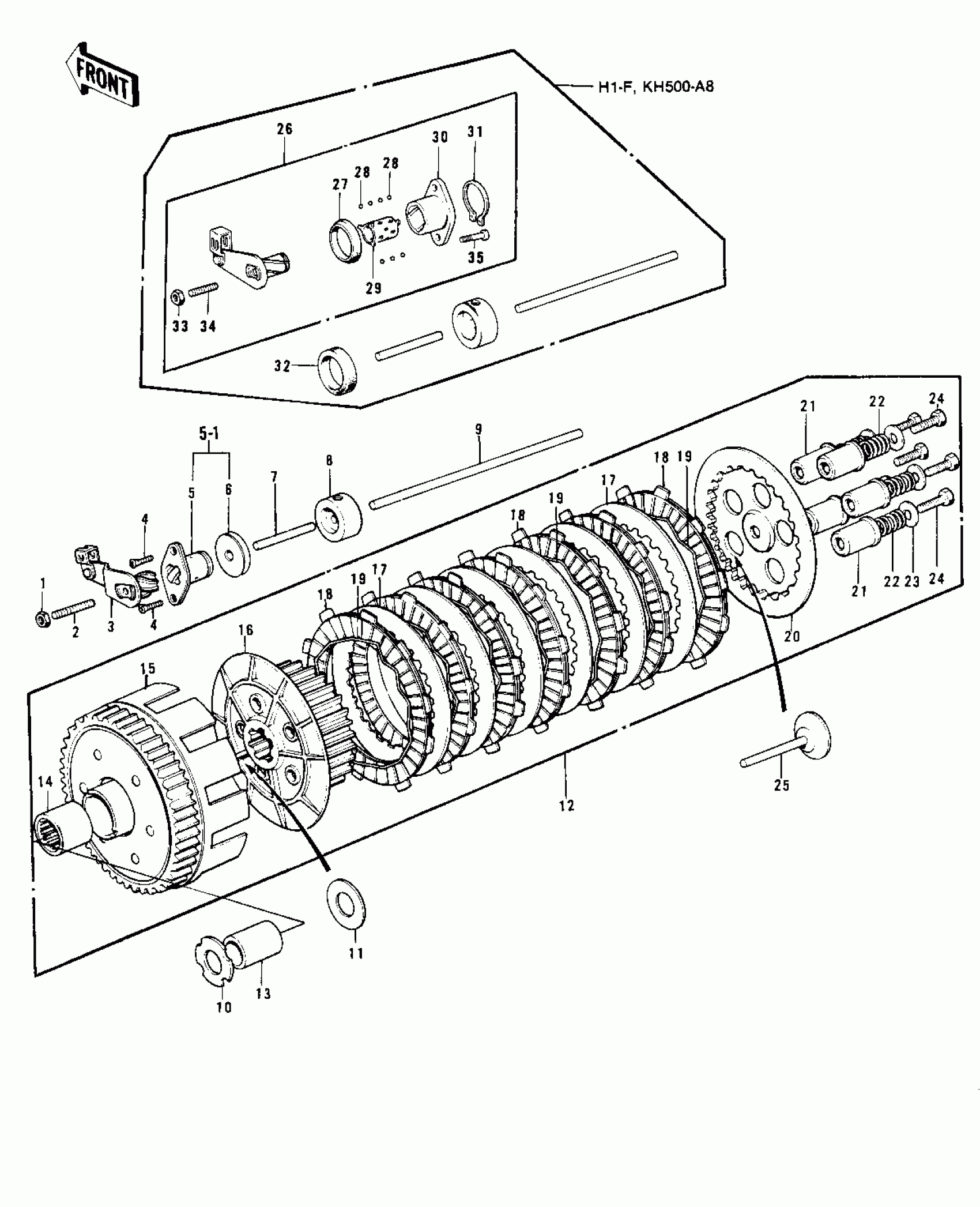 Kawasaki KH500-A8 CLUTCH ('73-'75 D/E/F & '76 A8) Diagram