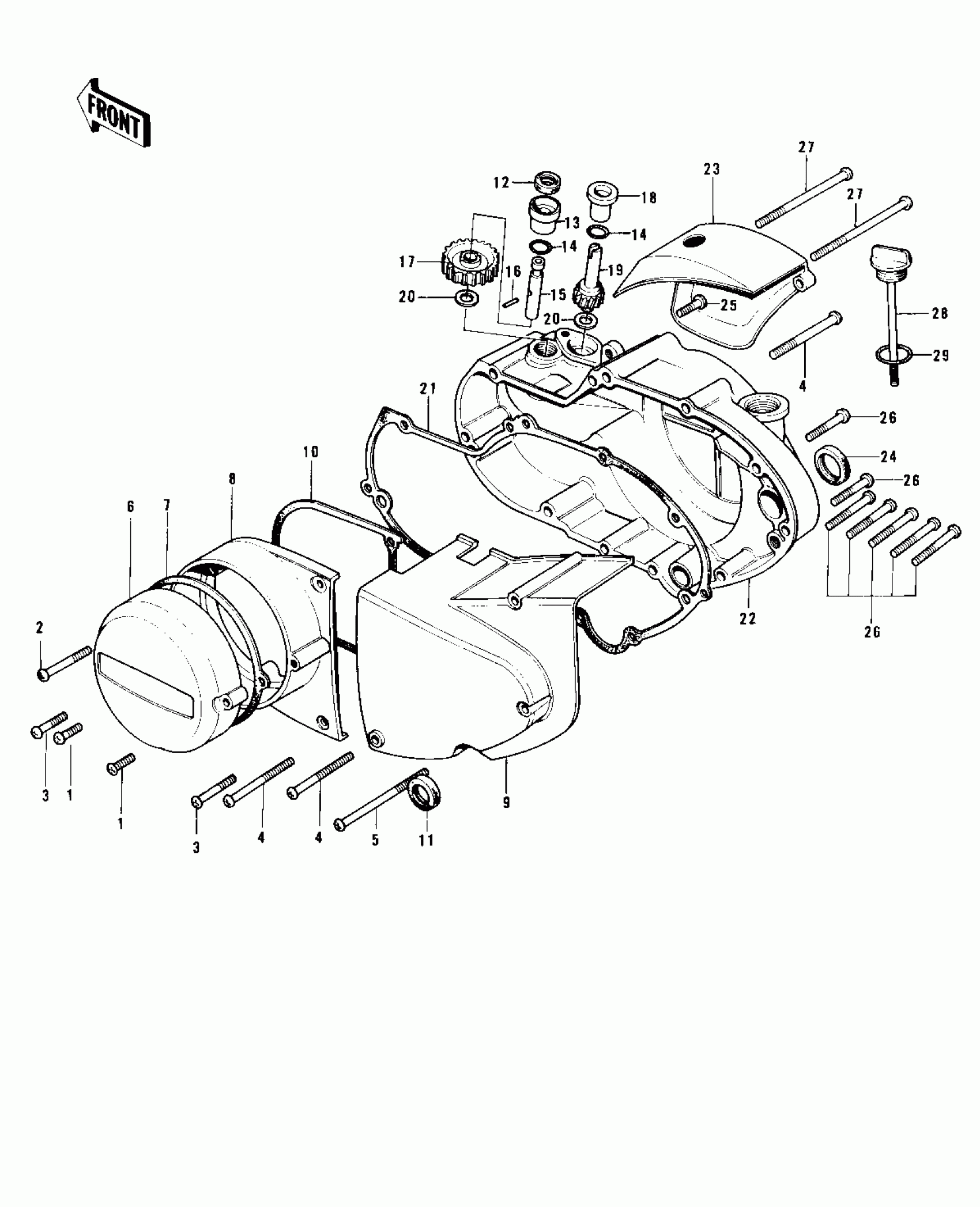 Kawasaki KH500-A8 ENGINE COVERS ('73-'75 D/E/F & '76 A8) Diagram