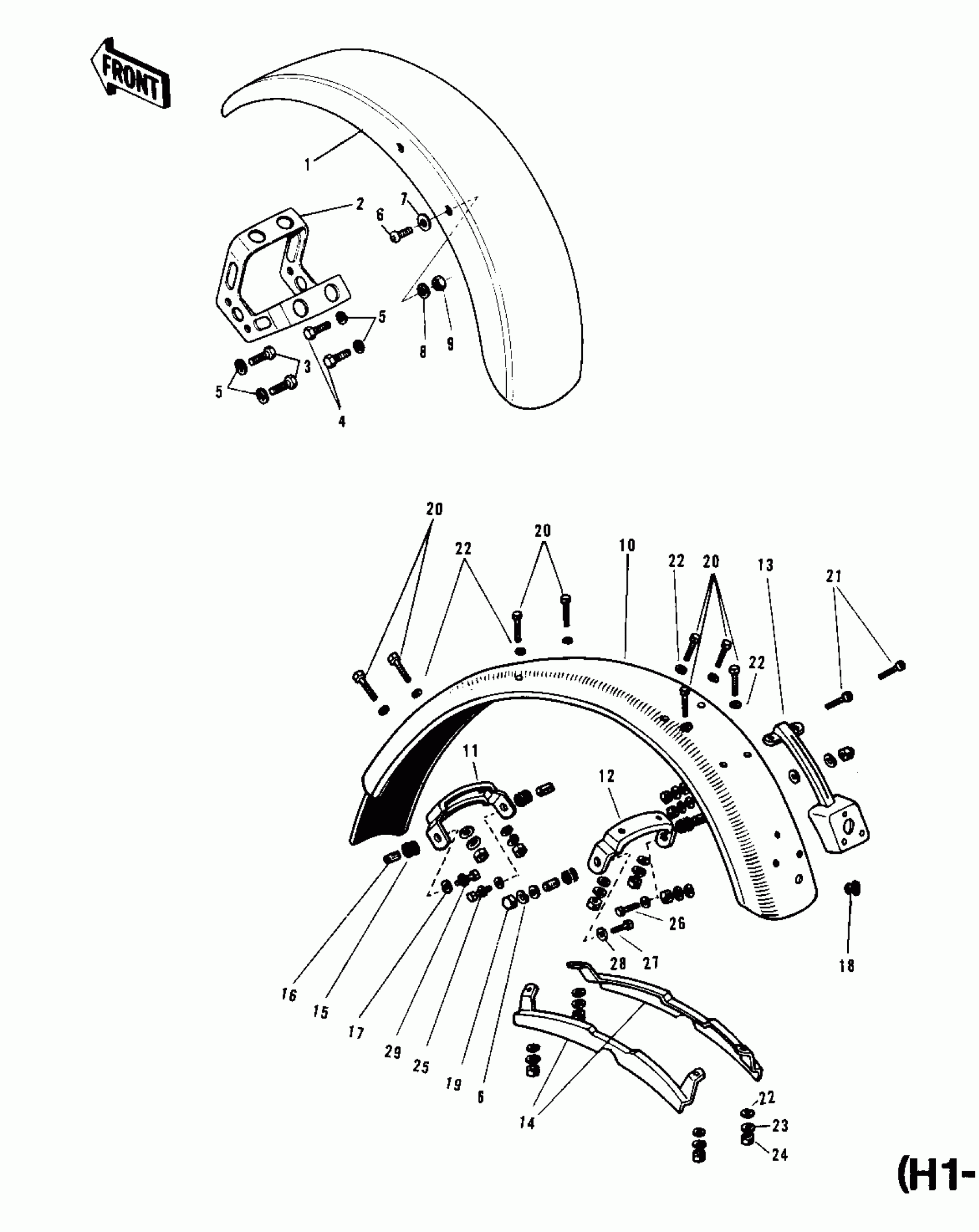 Kawasaki KH500-A8 FENDERS (H1-B) Diagram