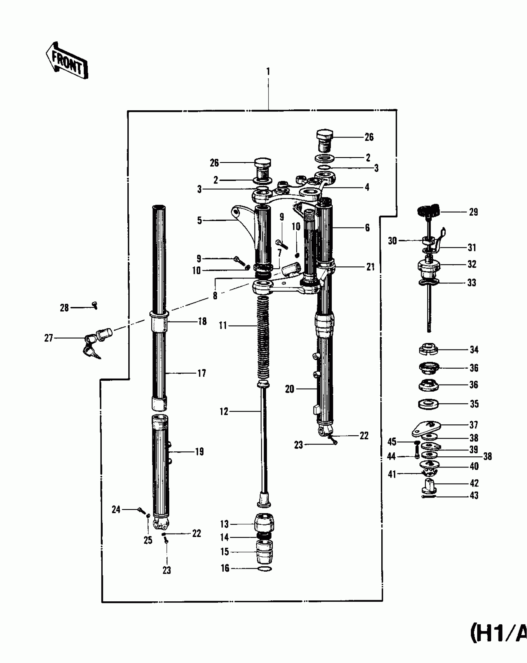 Kawasaki KH500-A8 FRONT FORK (H1/A/C) Diagram
