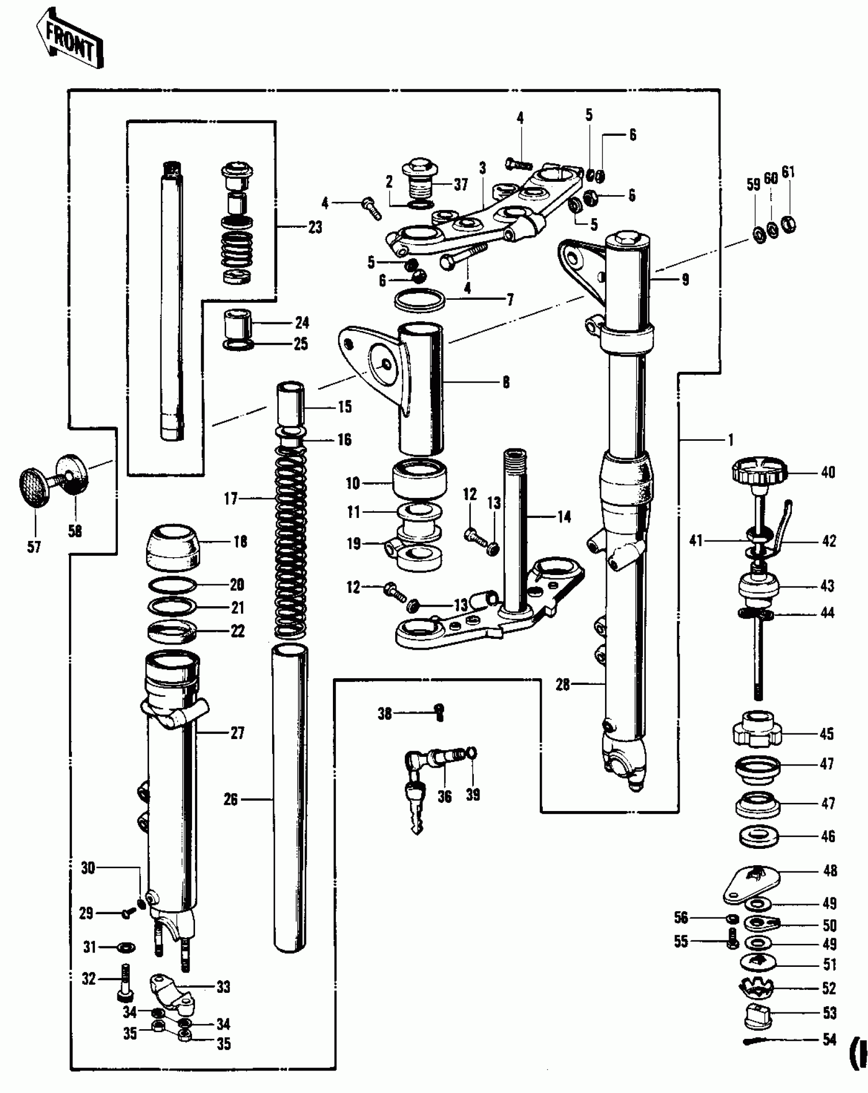 Kawasaki KH500-A8 FRONT FORK (H1-B) Diagram