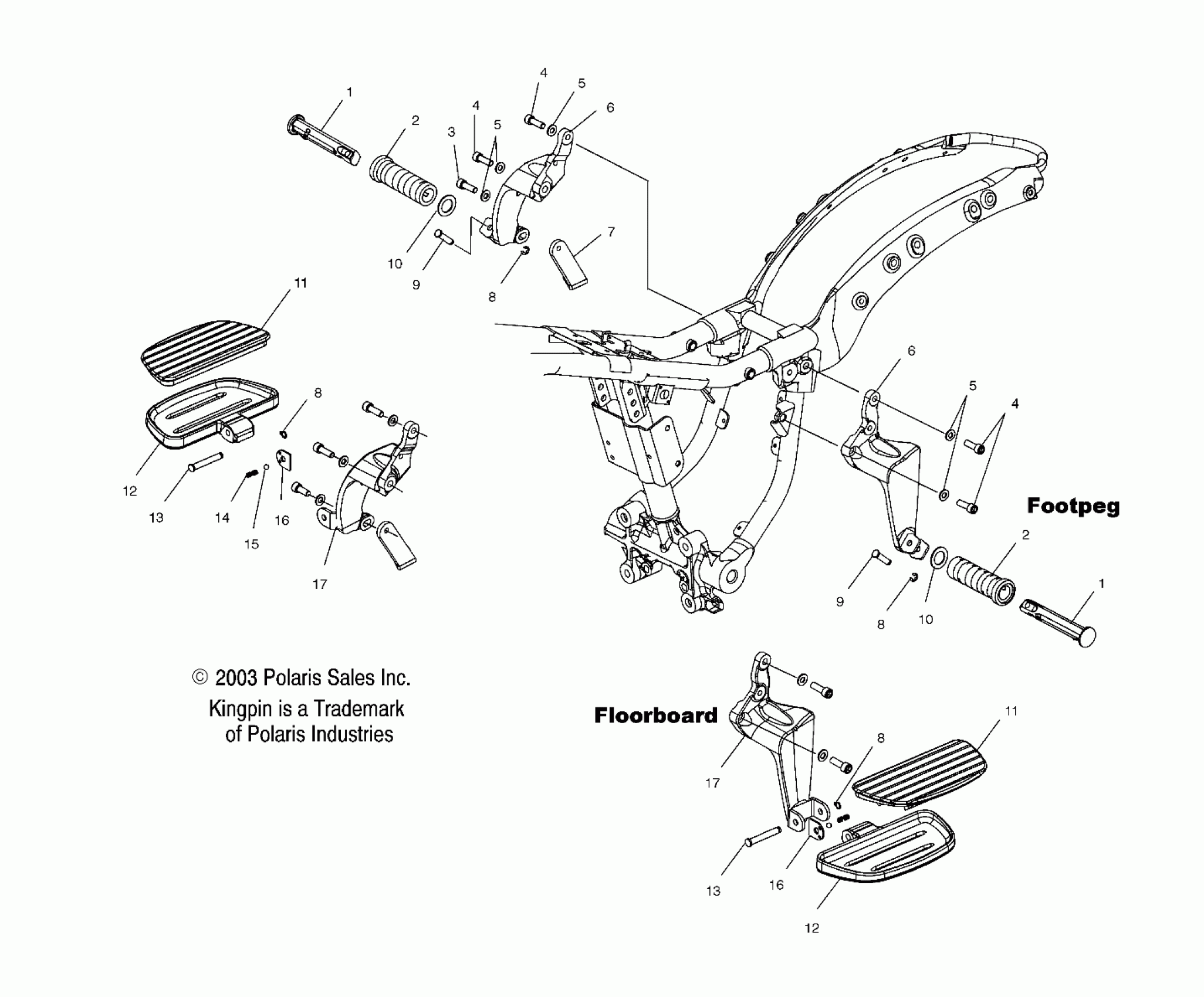 Polaris KINGPIN ALL OPTIONS - V04CB16 CHASSIS, FOOTPEGS, PASSENGER, FLOORBOARDS - V04CB16/ALL OPTIONS (4989568956A05) Diagram