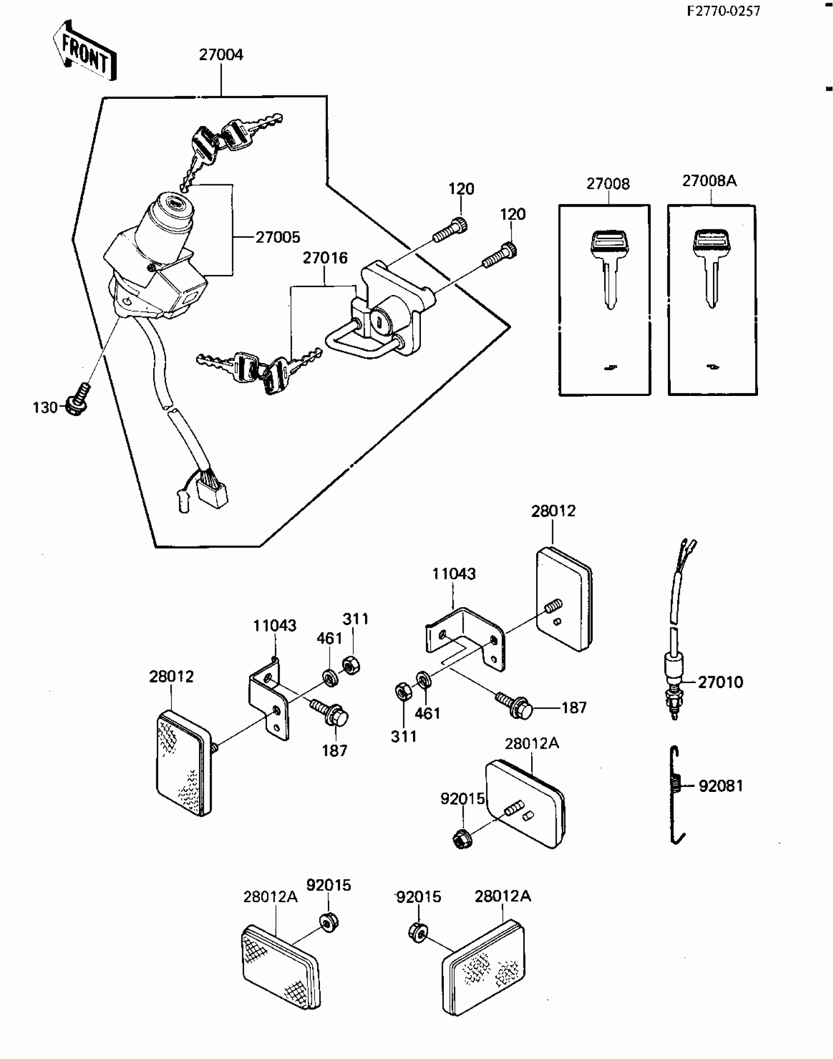 Kawasaki KL600 IGNITION SWITCH/LOCKS/REFLECTORS Diagram