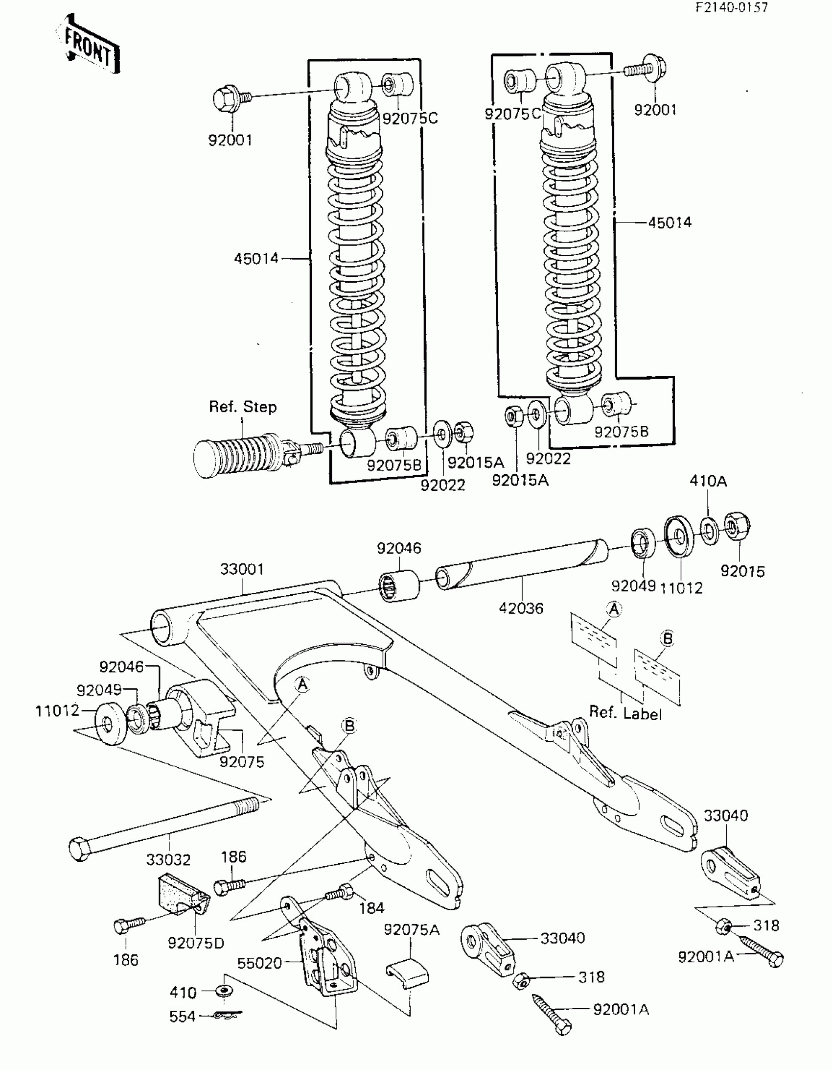 Kawasaki KLR250 SWING ARM/SHOCK ABSORBERS Diagram