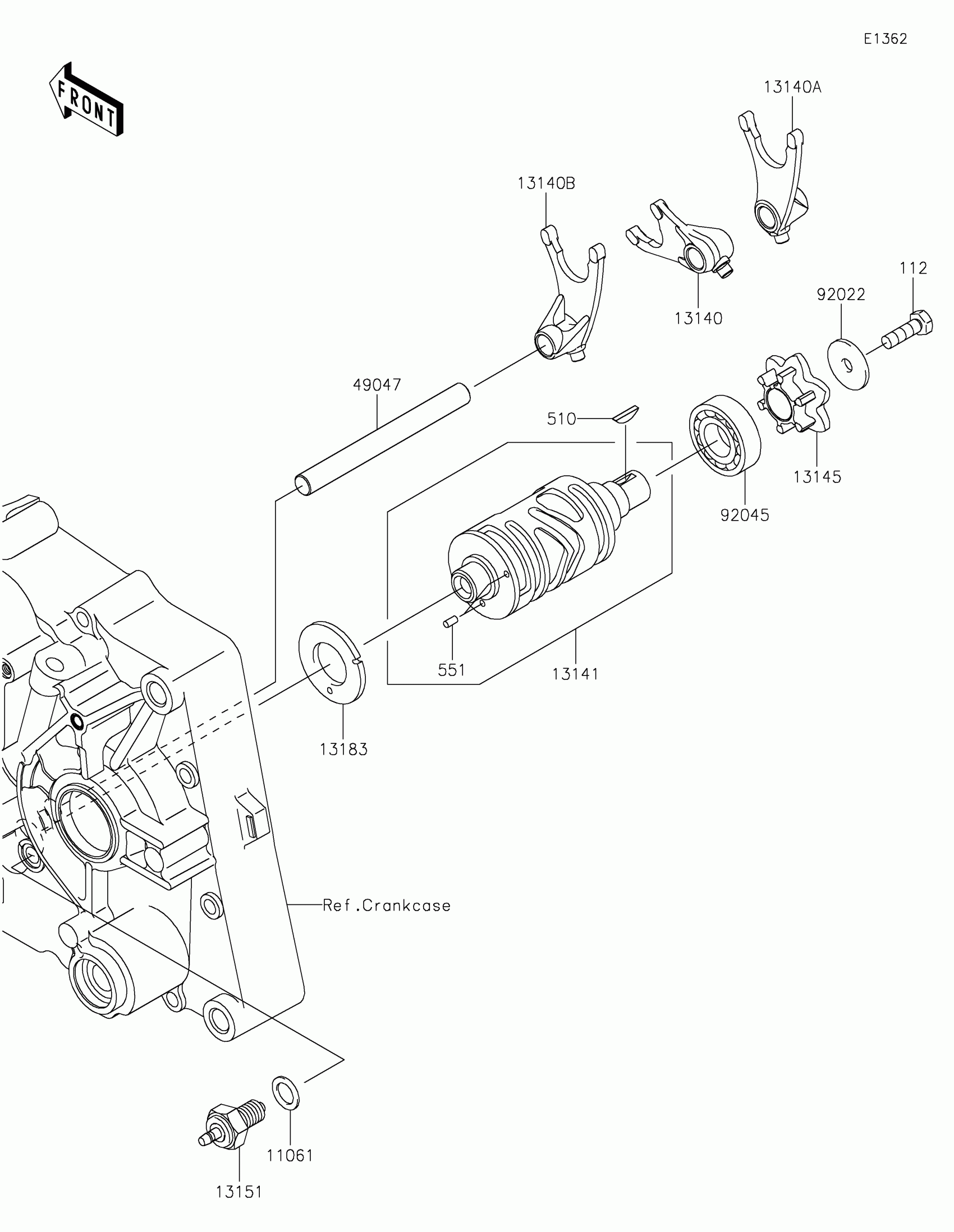 Kawasaki KLX®140R F Gear Change Drum/Shift Fork(s) Diagram