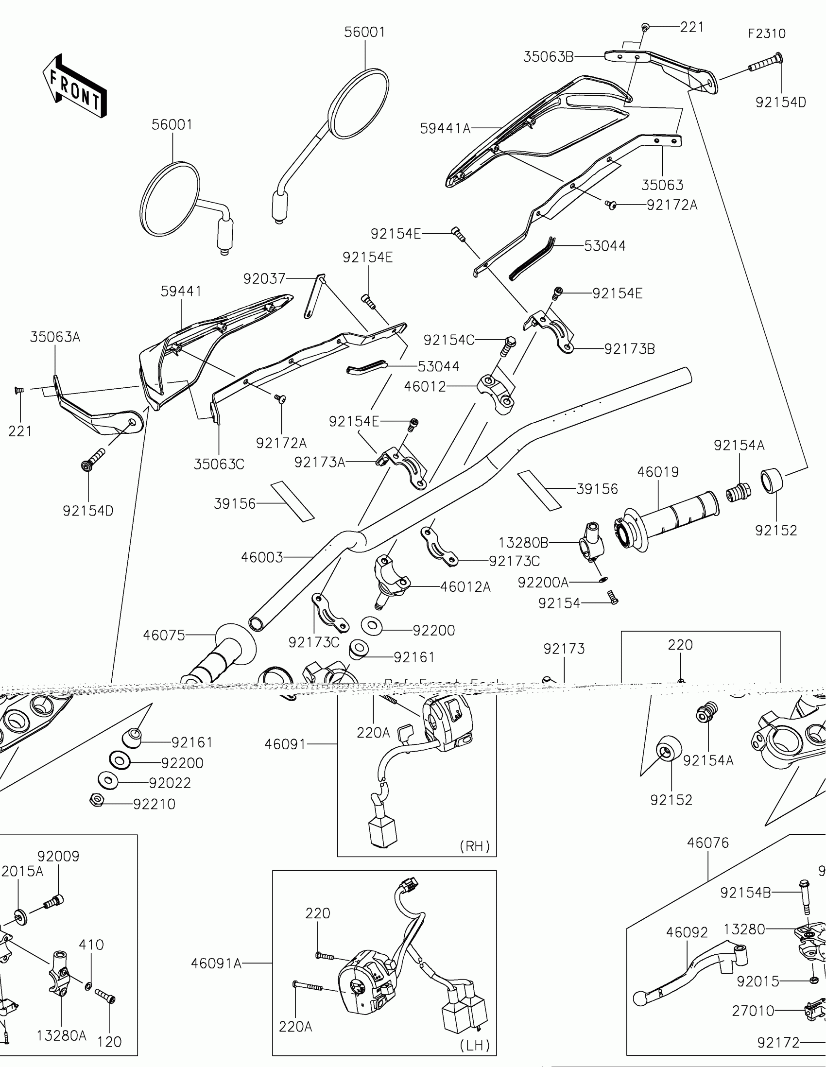Kawasaki KLX®230 DF ABS Handlebar Diagram