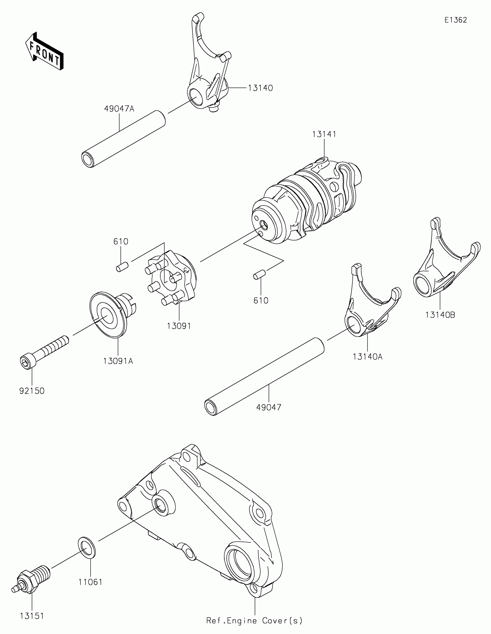 Kawasaki KLX®300SM Gear Change Drum/Shift Fork(s) Diagram