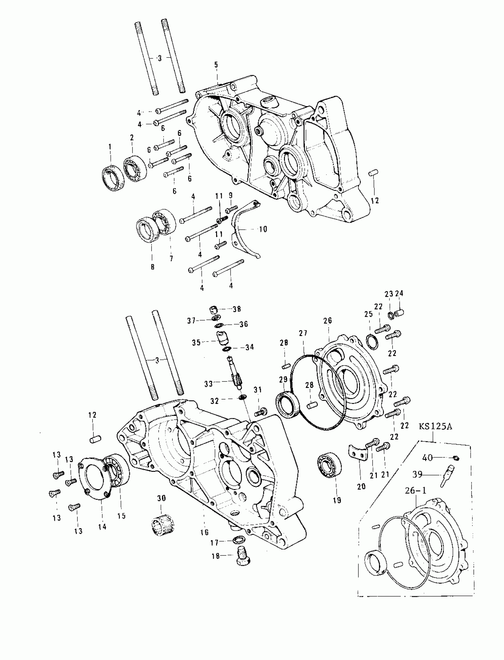 Kawasaki KS125-A CRANKCASE ('74-'75) Diagram