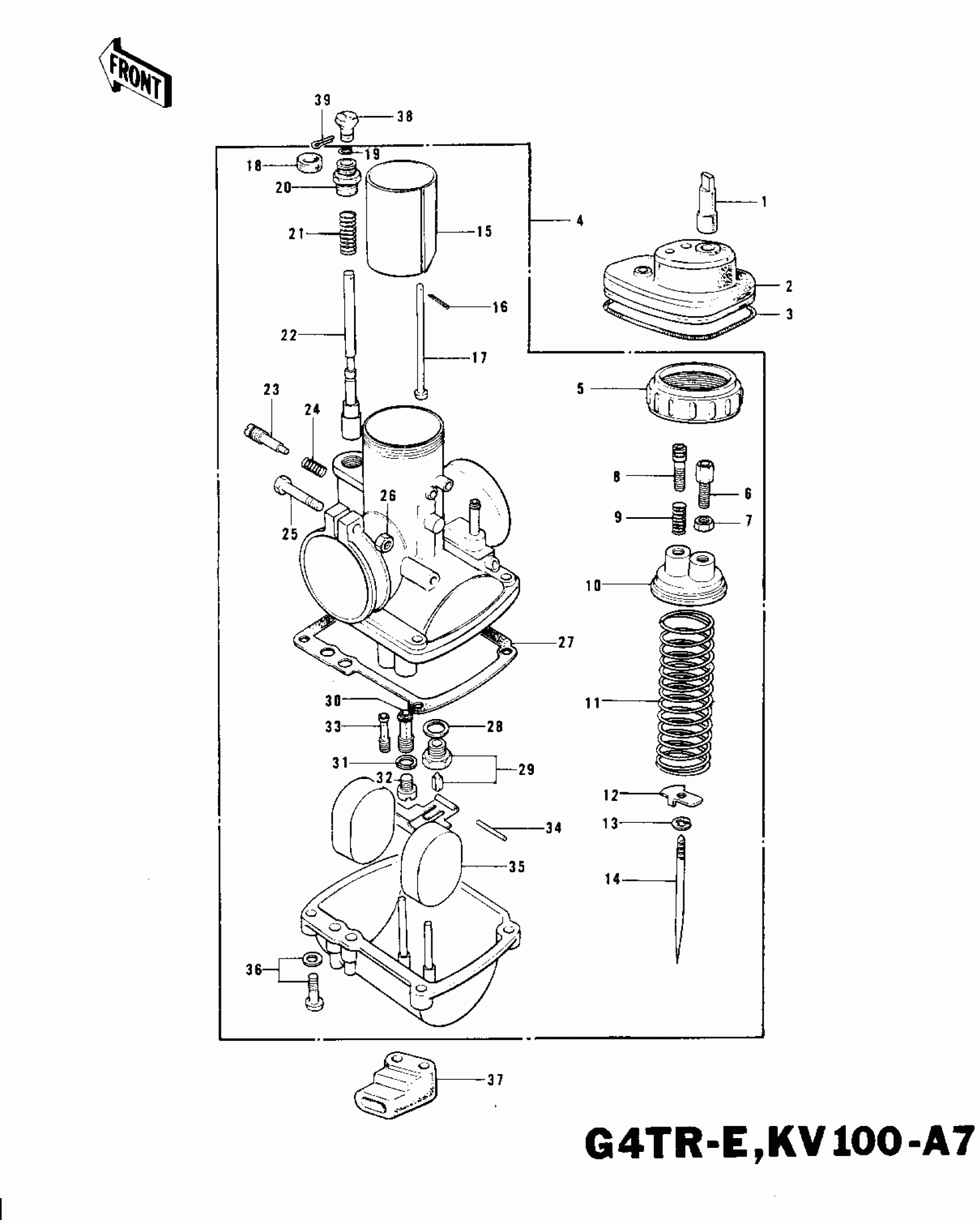 Kawasaki KV100-A7 CARBURETOR G4TR-E,KV100-A7 ('74-'75) Diagram