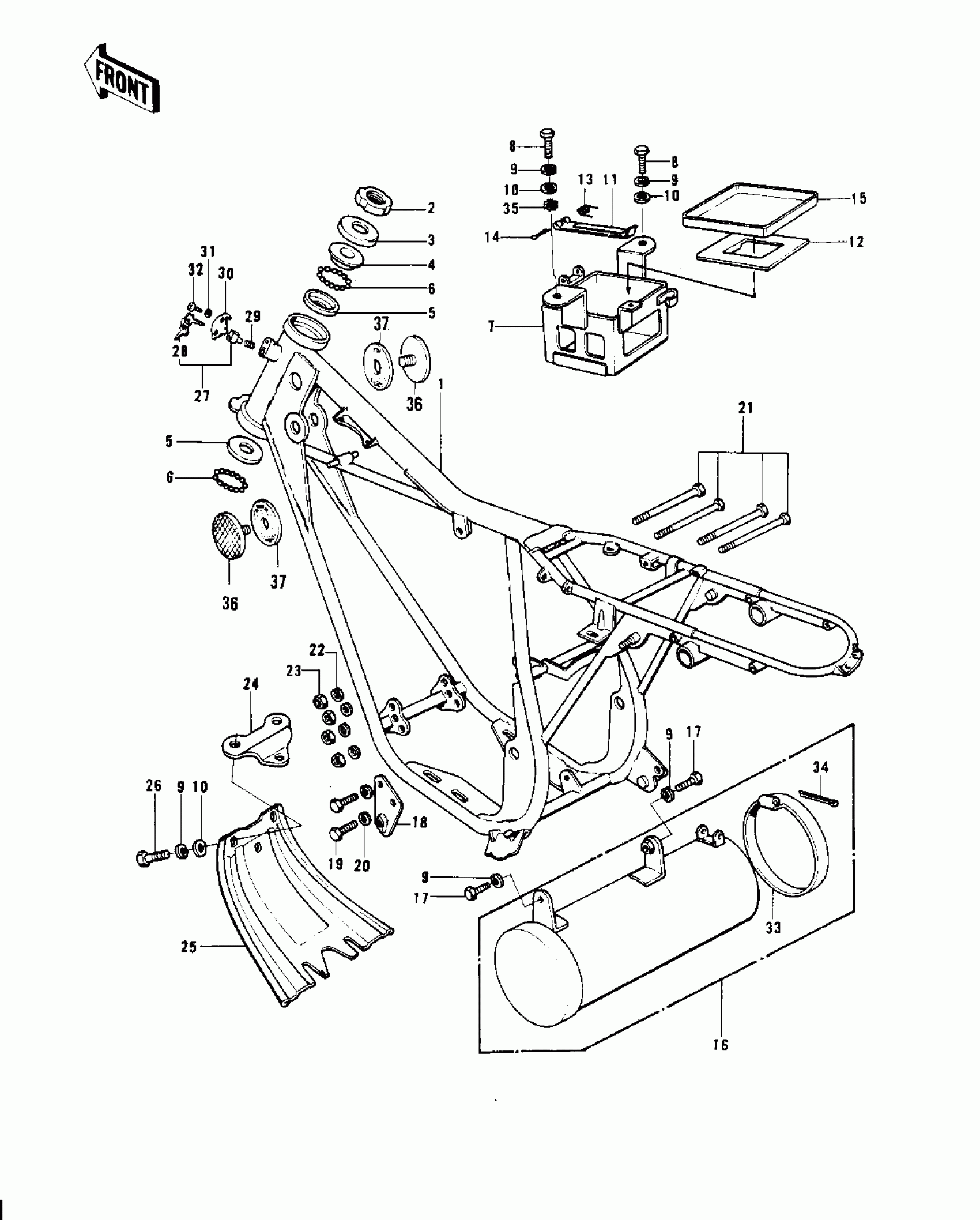 Kawasaki KV100-A7 FRAME/FRAME FITTINGS ('74-'75) Diagram