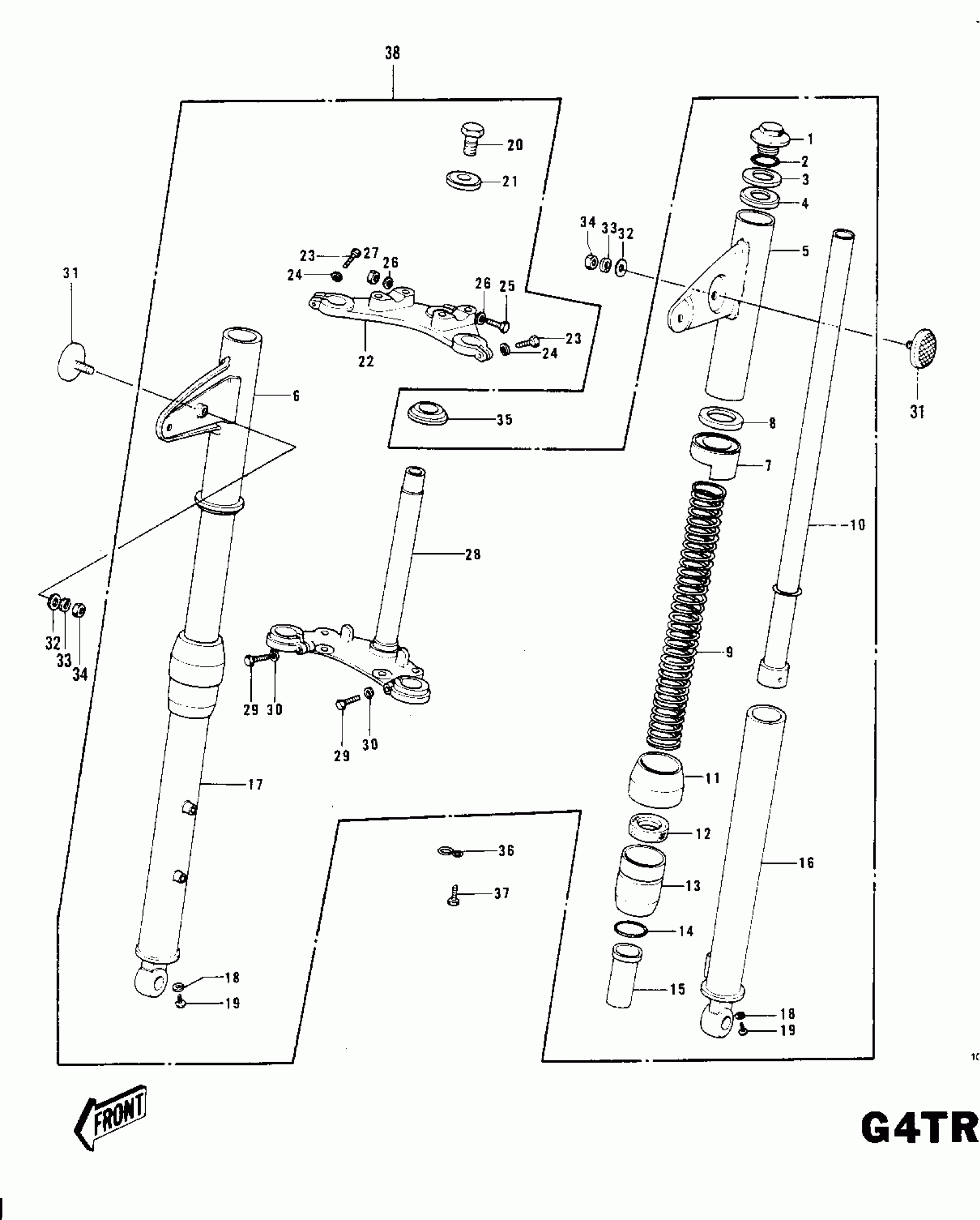Kawasaki KV100-A7 FRONT FORK G4TR-C ('70-'73) Diagram