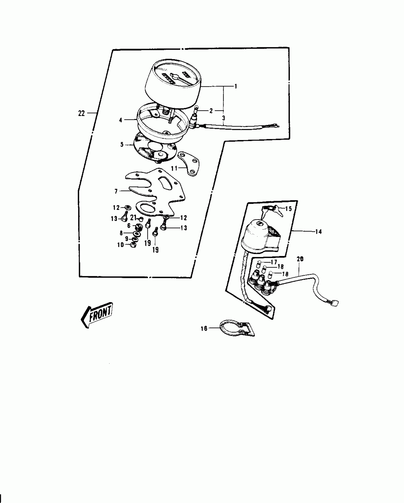 Kawasaki KV100-A7 METER/IGNITION SWITCH ('74-'75) Diagram