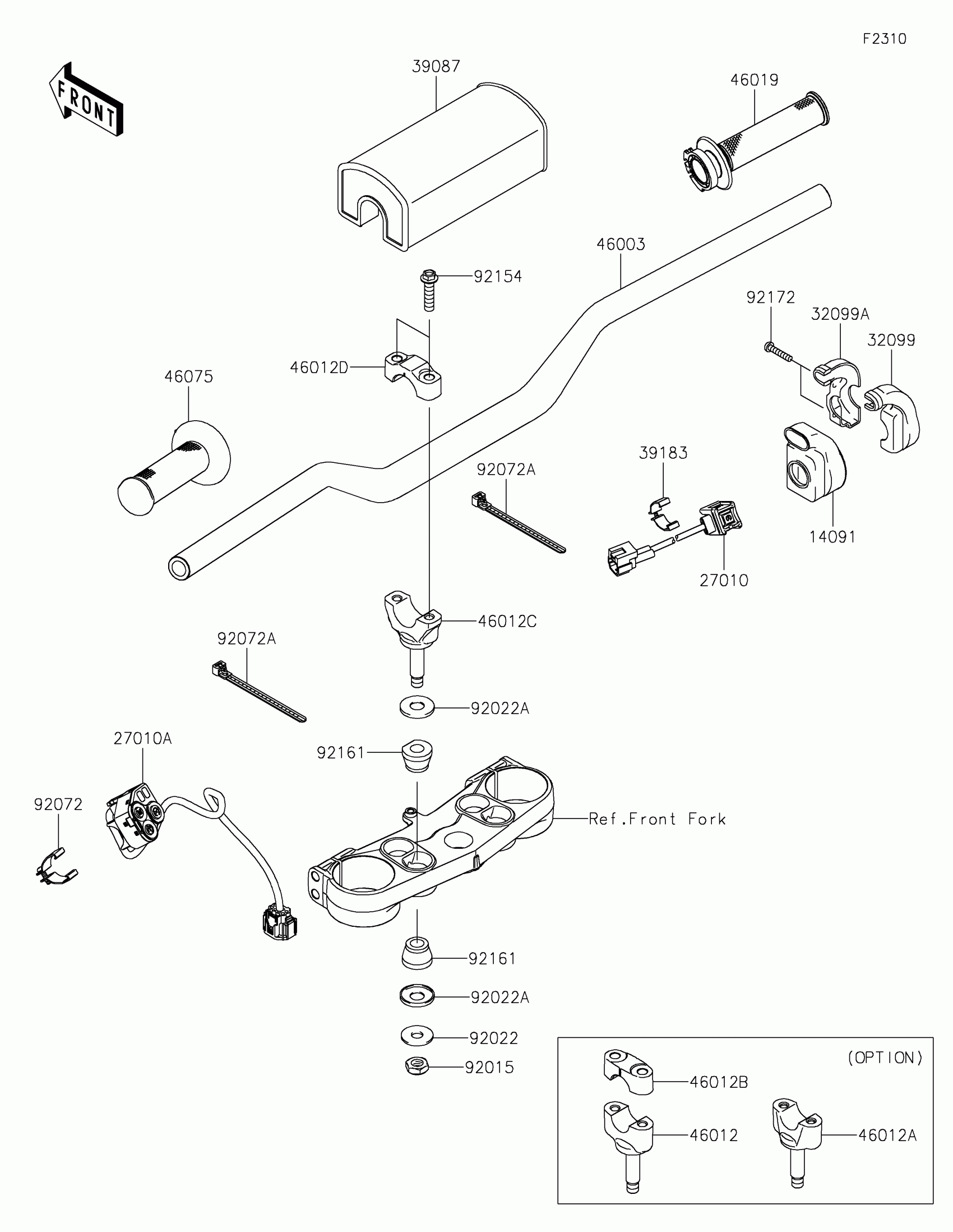 Kawasaki KX™450X Handlebar Diagram