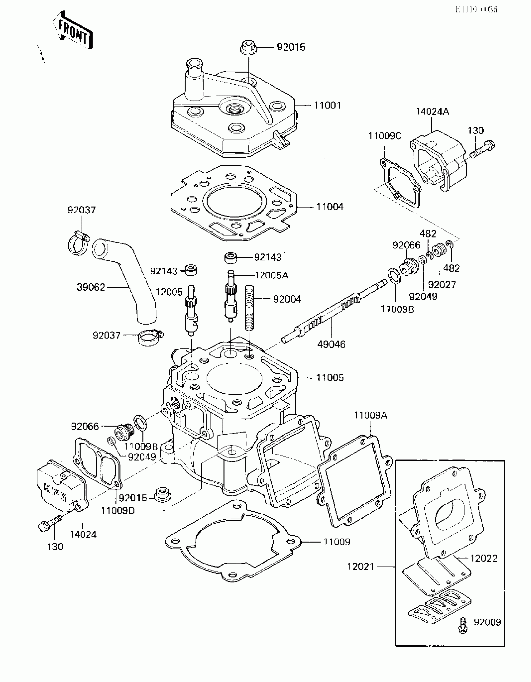 Kawasaki KX125 CYLINDER HEAD/CYLINDER/REED VALVE Diagram