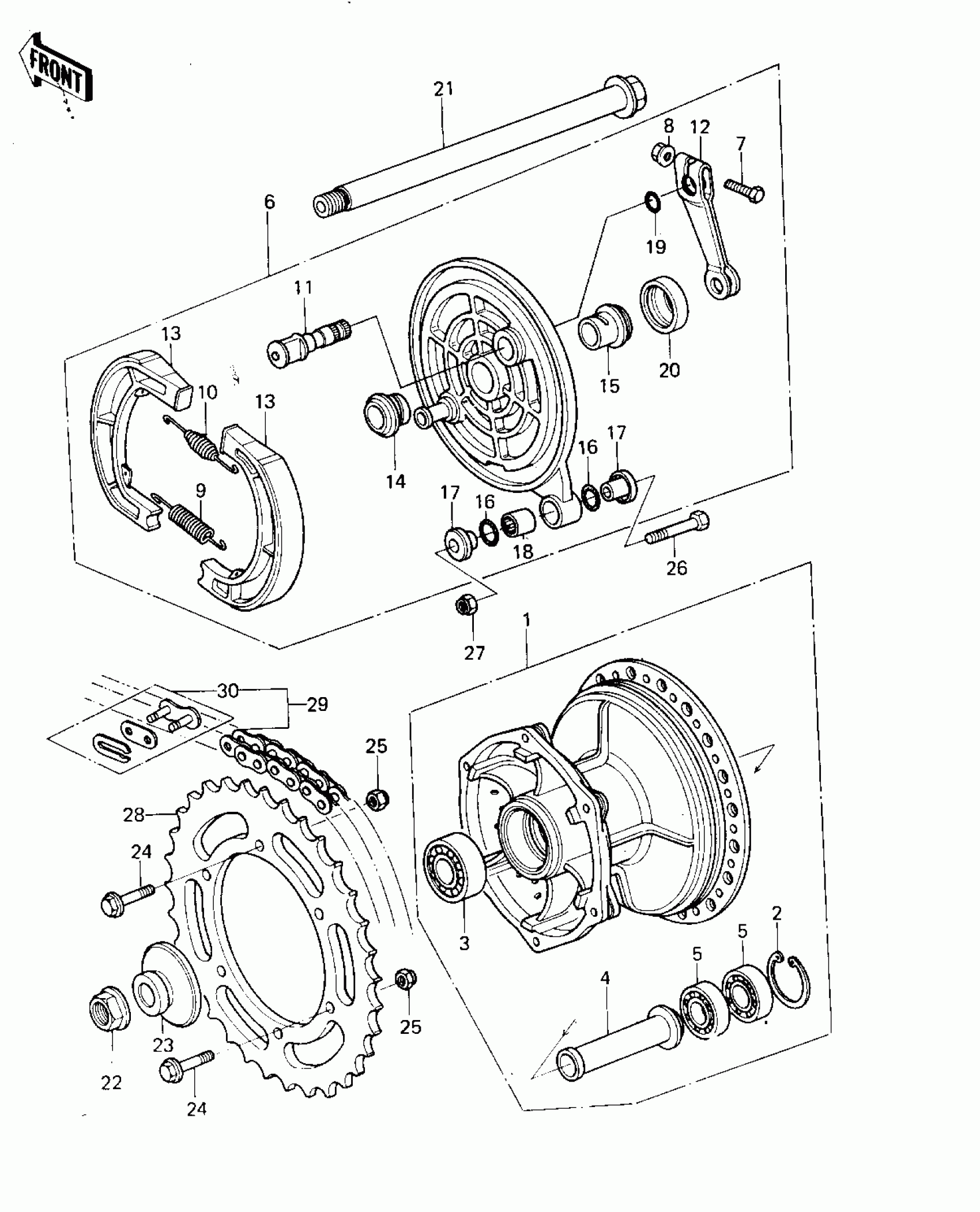Kawasaki KX125 REAR HUB/BRAKE/CHAIN ('80 A6) Diagram