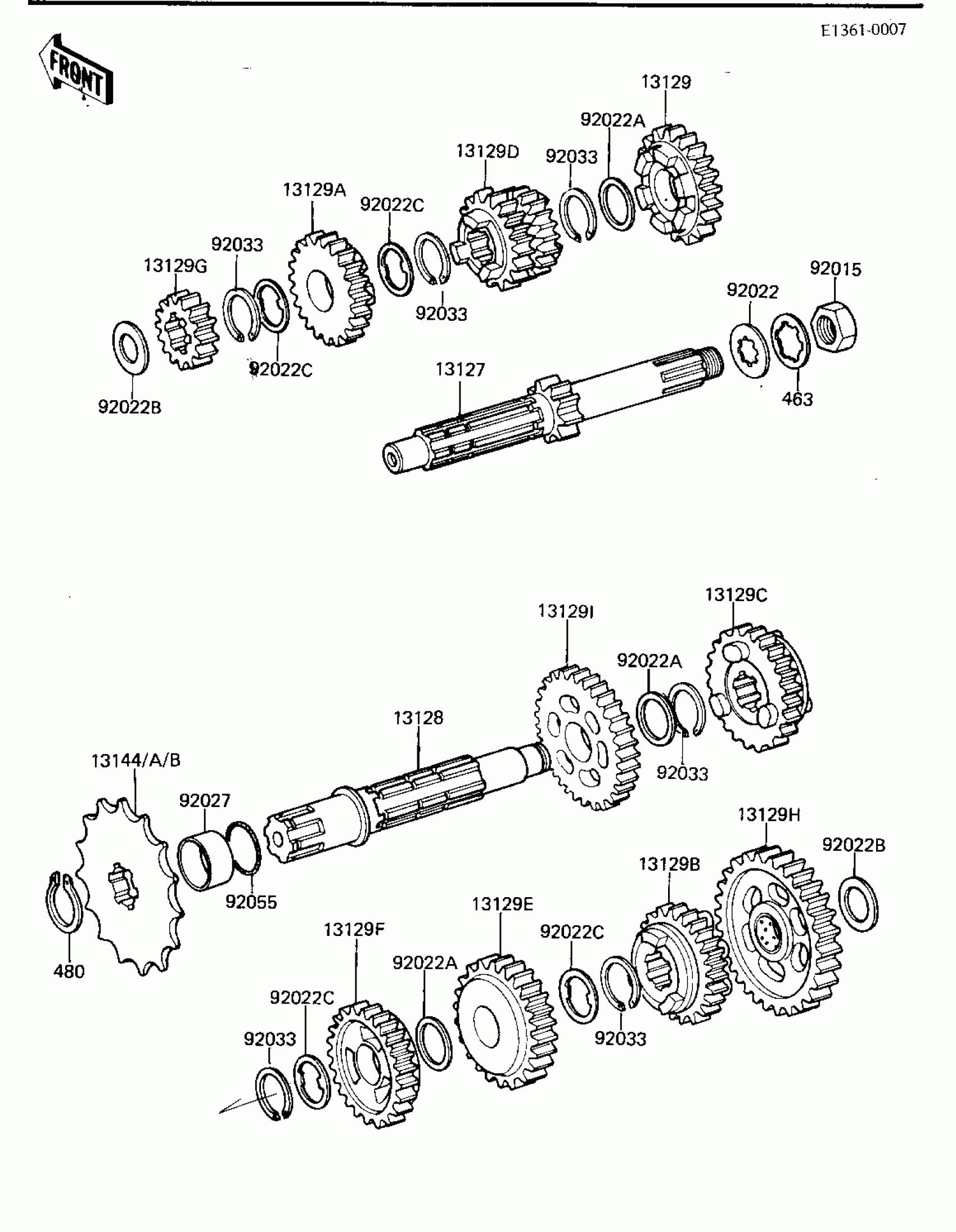 Kawasaki KX125 TRANSMISSION ('81 A7) Diagram