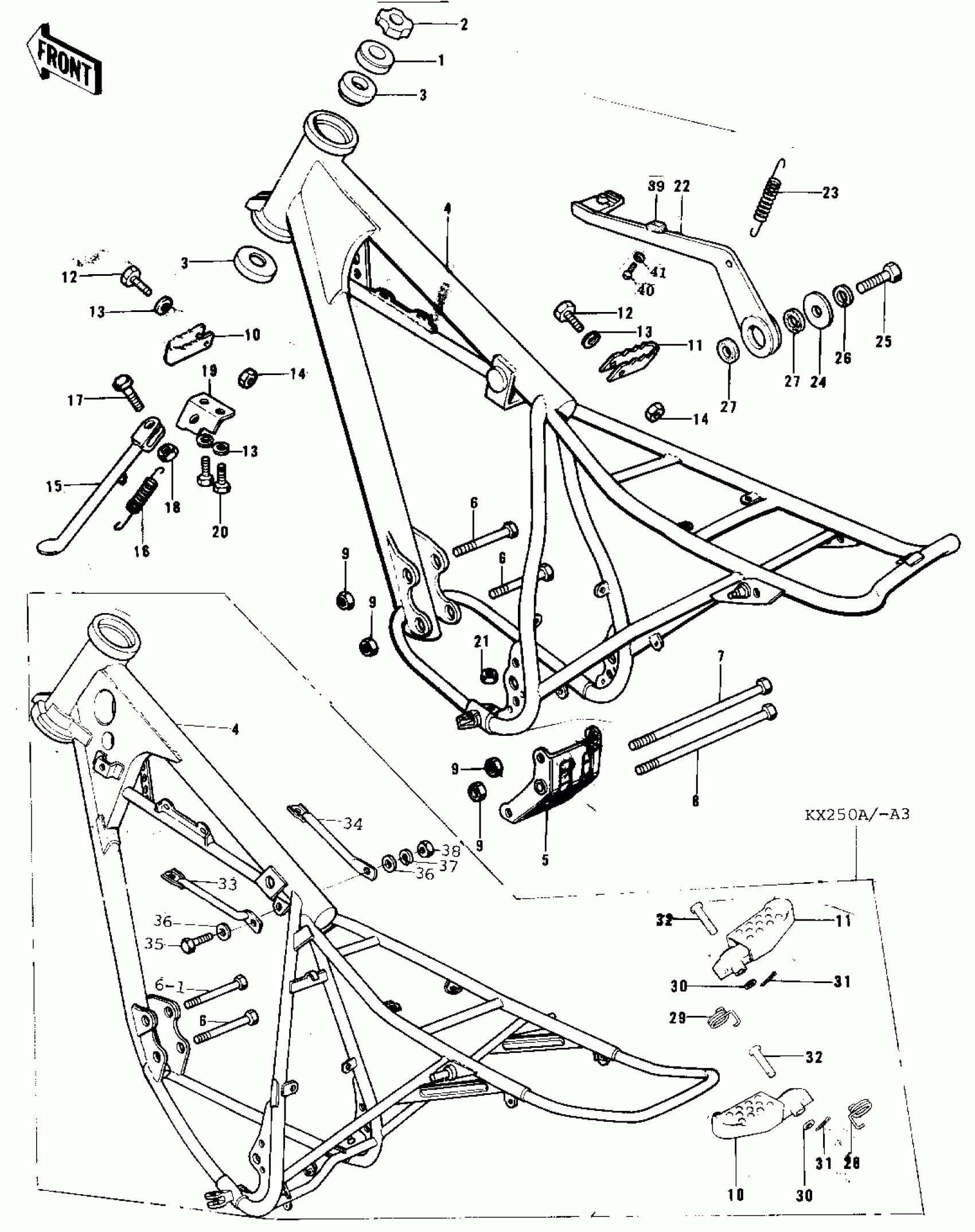 Kawasaki KX250-A3 FRAME/FRAME FITTINGS (74-76) Diagram