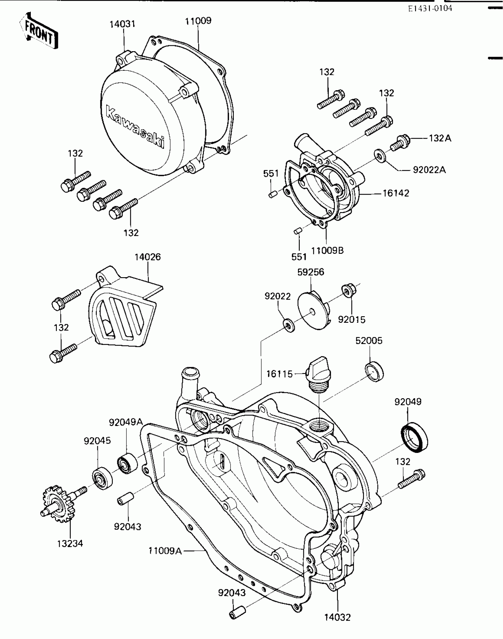Kawasaki KX250 ENGINE COVERS/WATER PUMP ('84 KX250-C2) Diagram