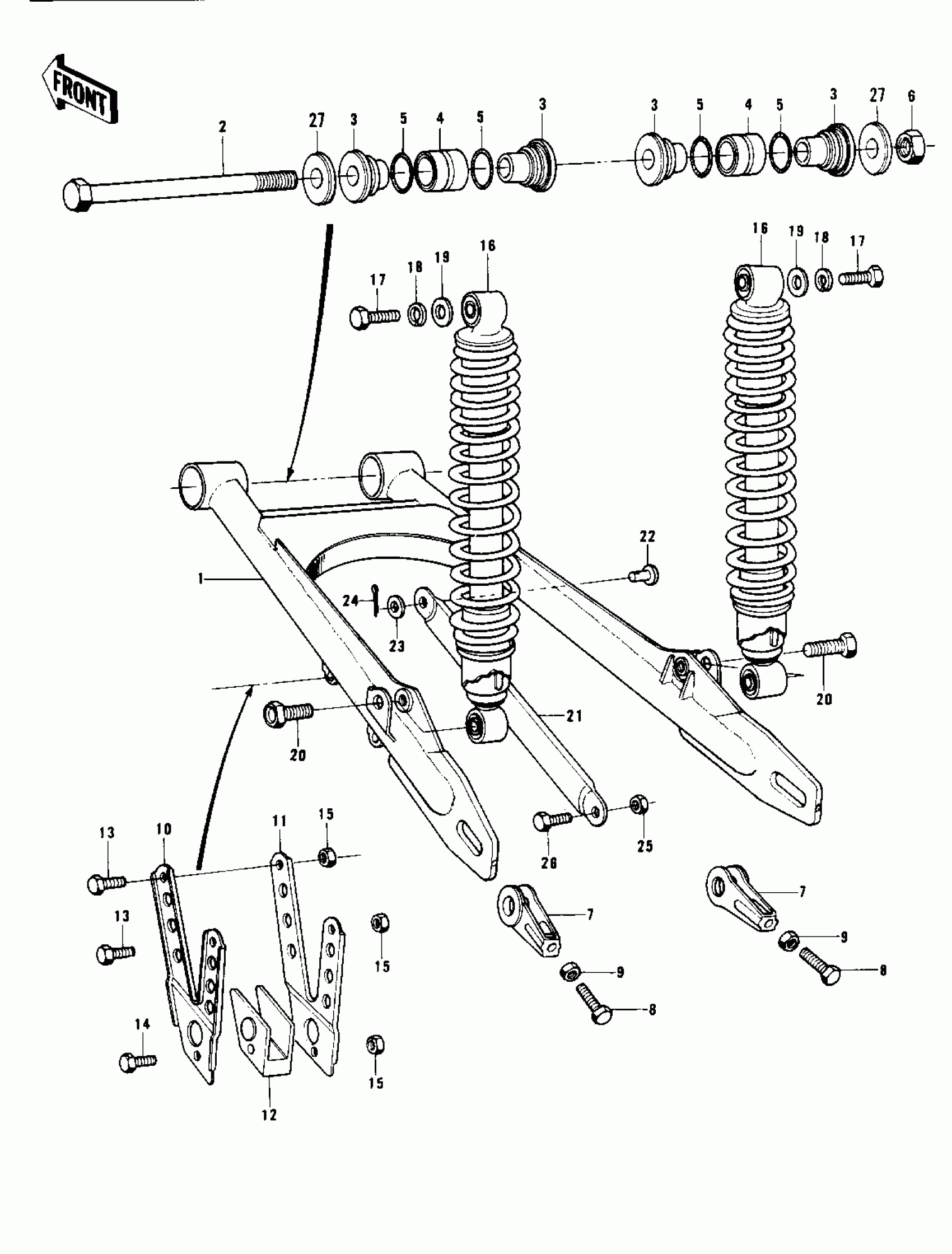Kawasaki KX400-A2 SWING ARM/SHOCK ABSORBERS Diagram