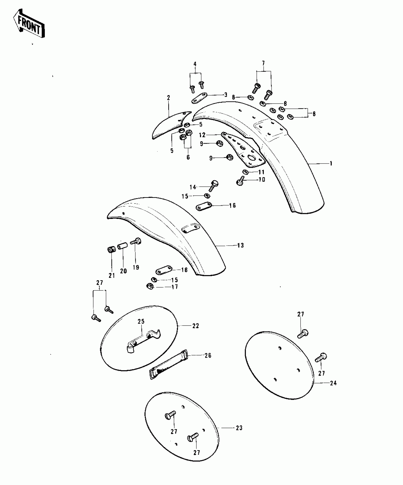 Kawasaki KX450 FENDERS/NUMBER PLATES ('74 KX 450) Diagram