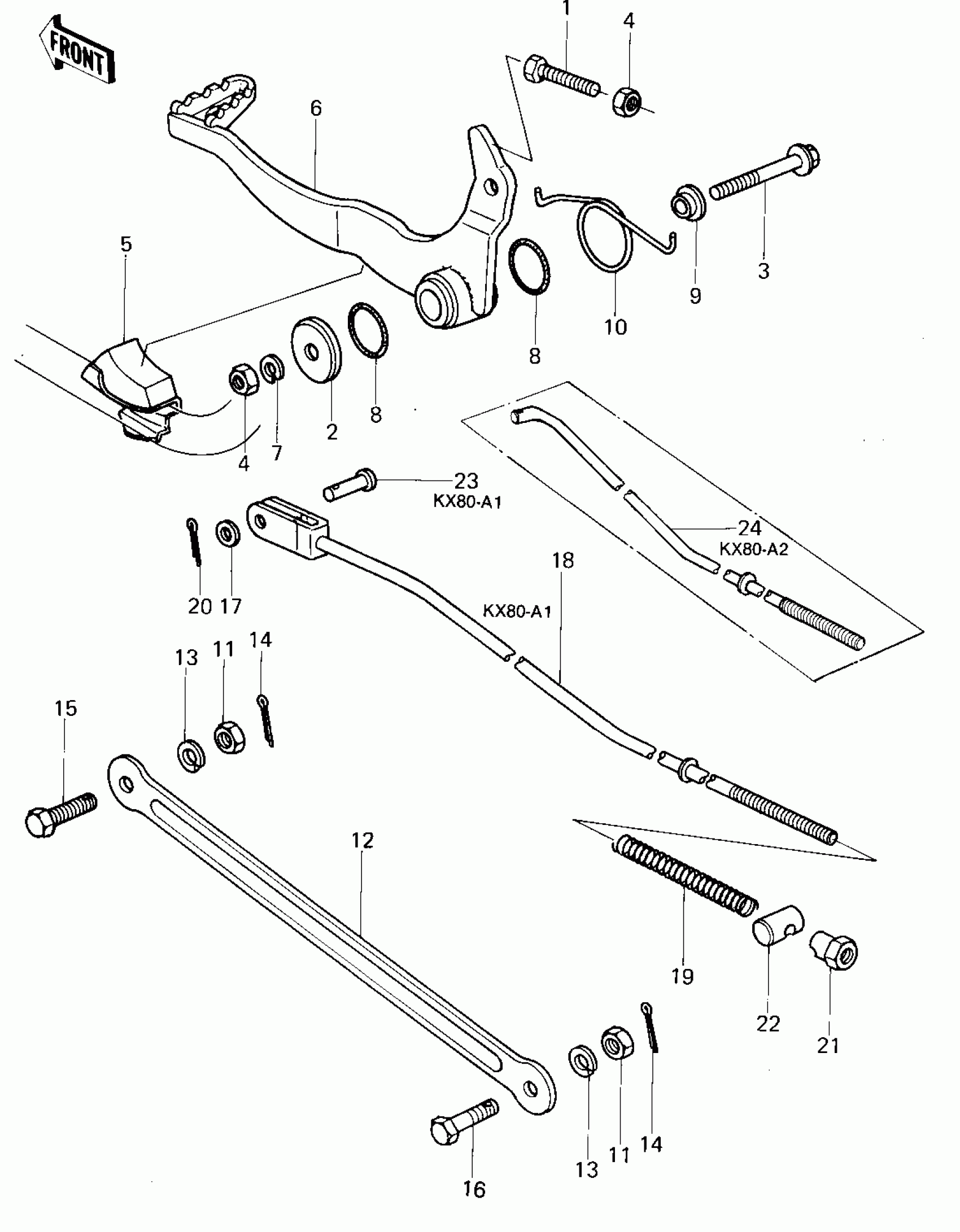 Kawasaki KX80 BRAKE PEDAL/TORQUE LINK Diagram