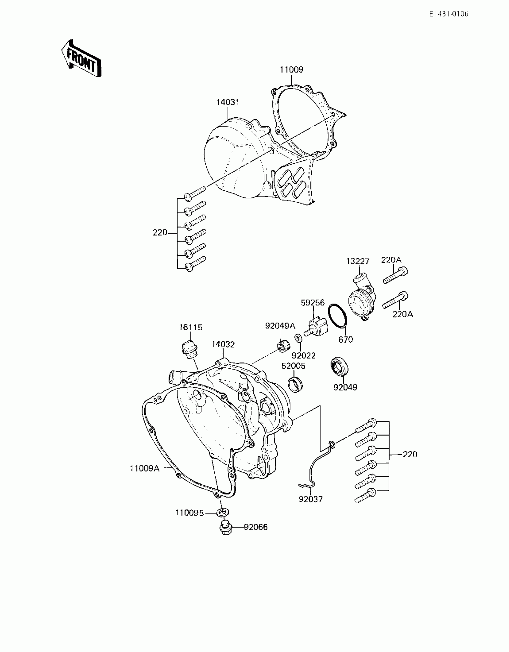 Kawasaki KX80 ENGINE COVERS/WATER PUMP Diagram