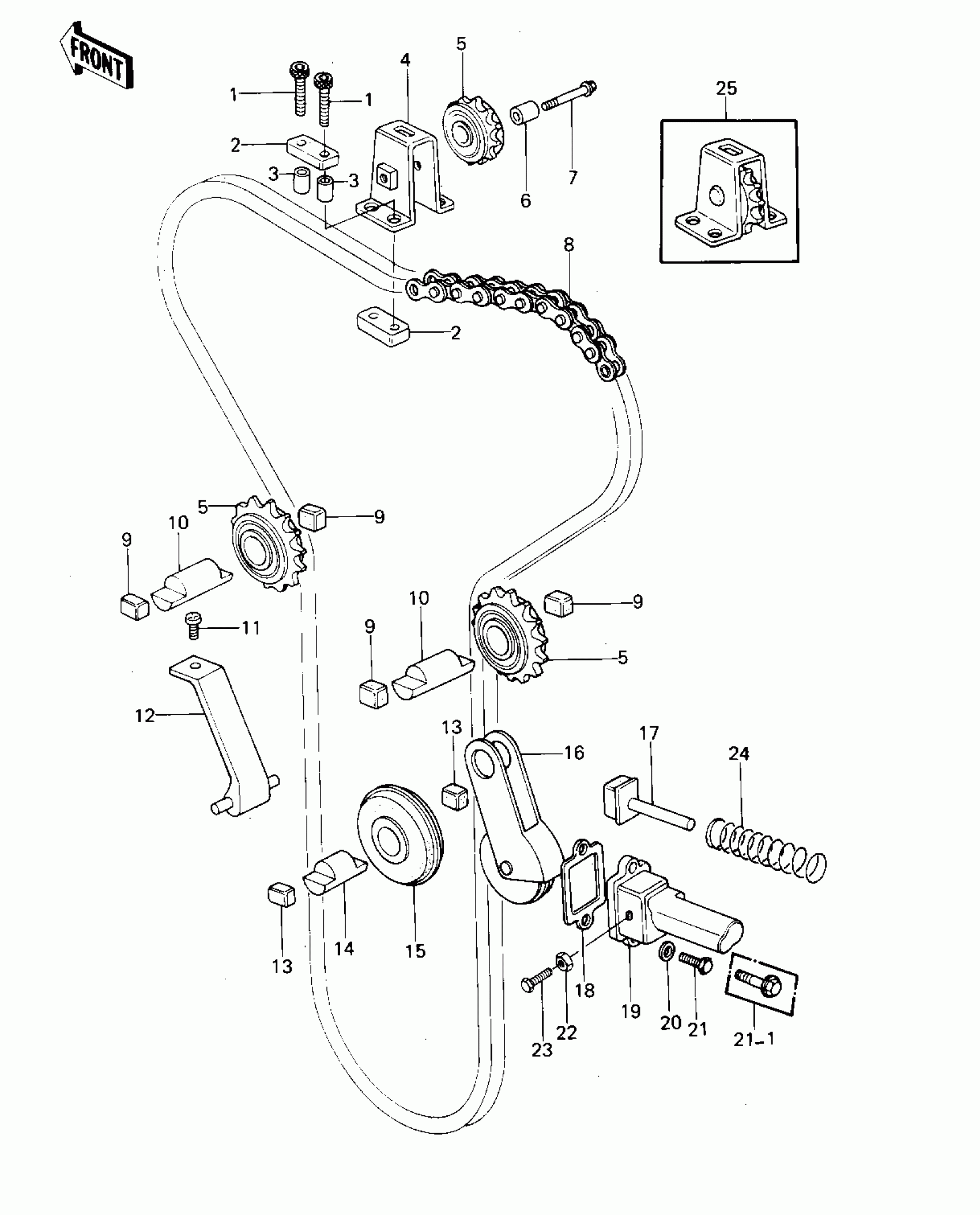 Kawasaki KZ1000 CAM CHAIN/TENSIONER('77-'78 A1/A2/A2A) Diagram