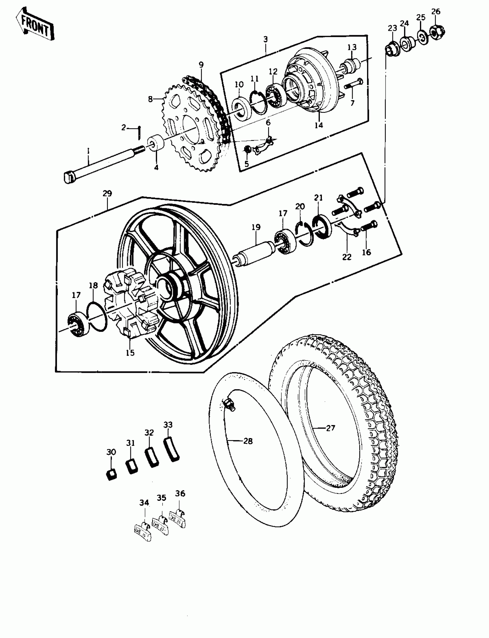 REAR WHEEL/TIRE/HUB/CHAIN ('77-'78 B1/B2