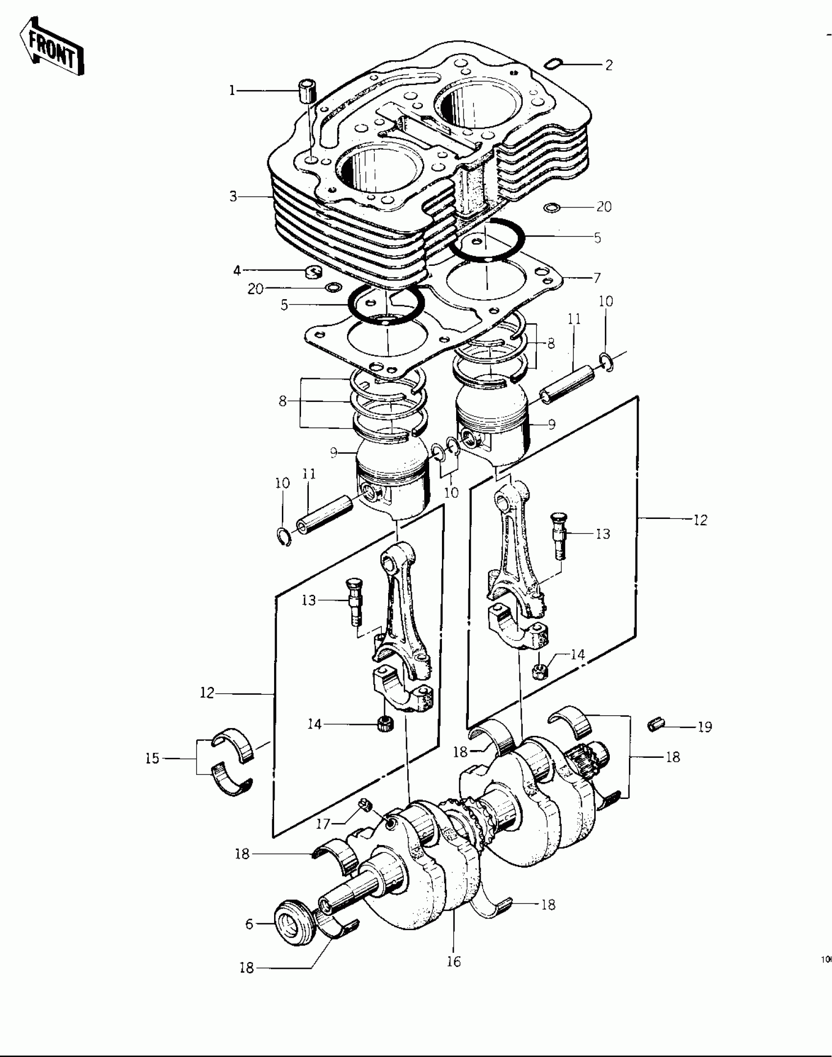 Kawasaki KZ400-D CYLINDER/PISTONS/CRANKSHAFT ('74 -'75 KZ Diagram