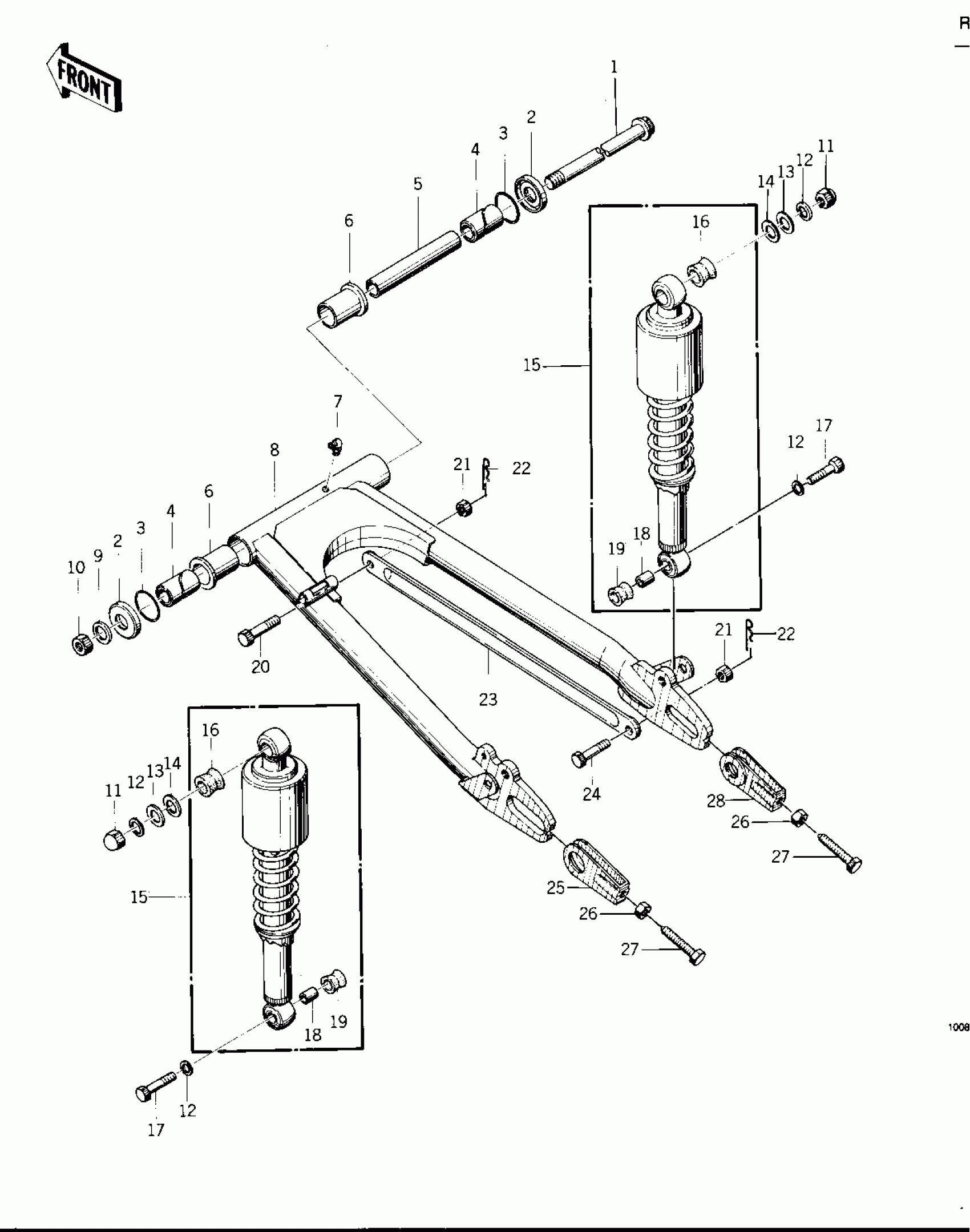 Kawasaki KZ400-D SWING ARM/SHOCK ABSORBERS ('74 -'75 KZ40 Diagram