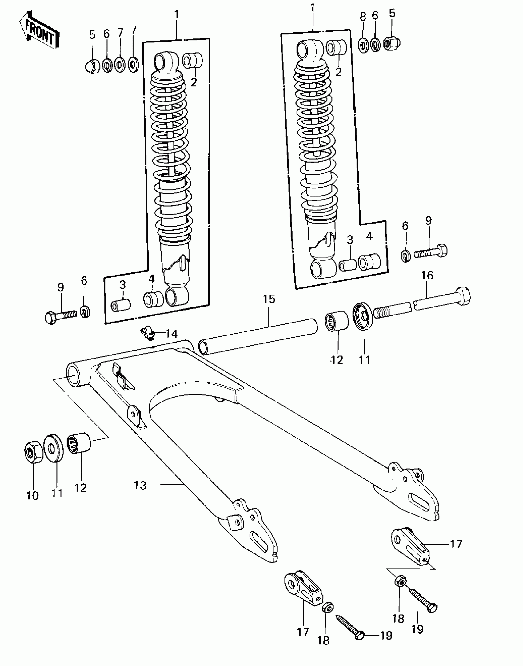 Kawasaki KZ440-B1 SWING ARM/SHOCK ABSORBERS ('80 B1) Diagram