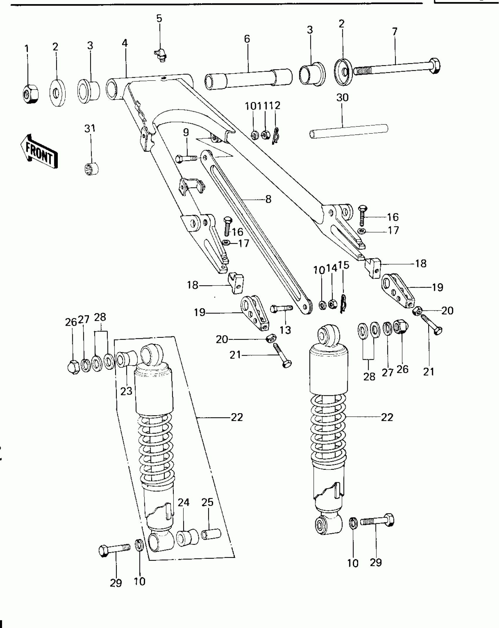 Kawasaki KZ650-B3 SWING ARM/SHOCK ABSORBERS Diagram