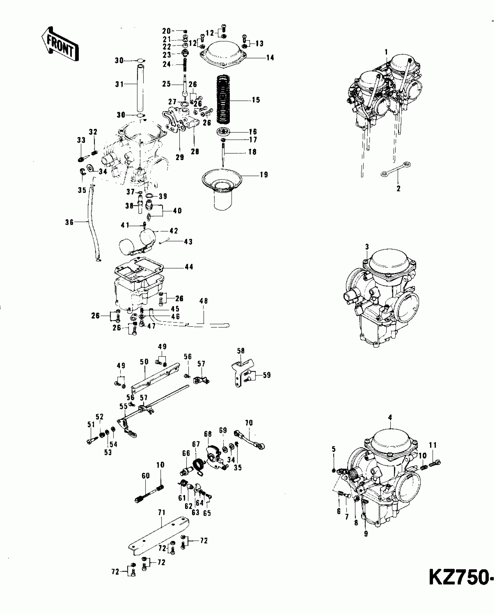 Kawasaki KZ750-B4 CARBURETORS (KZ750-B1/B2/B3) Diagram