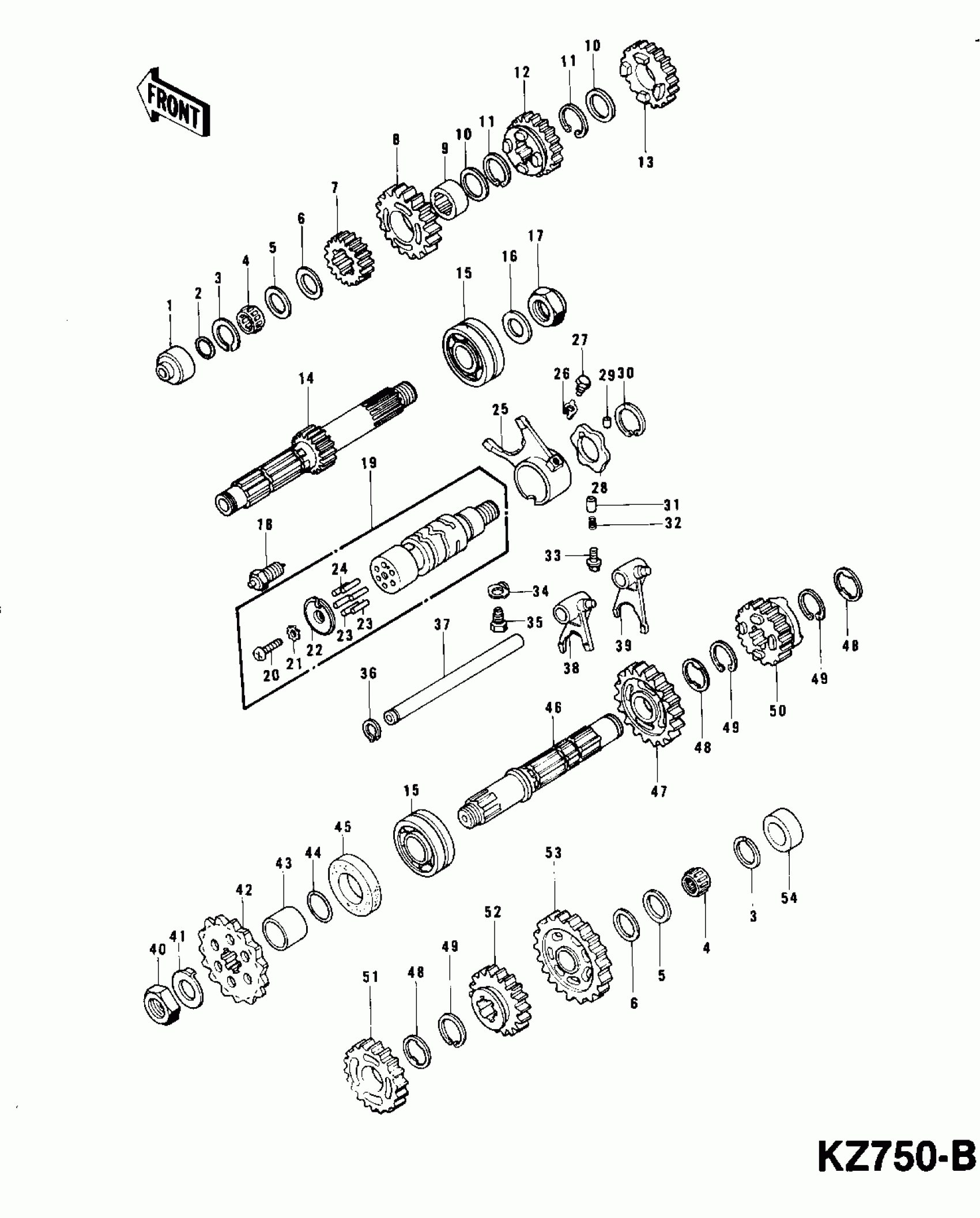 Kawasaki KZ750-B4 TRANSMISSION (KZ750-B1/B2) Diagram