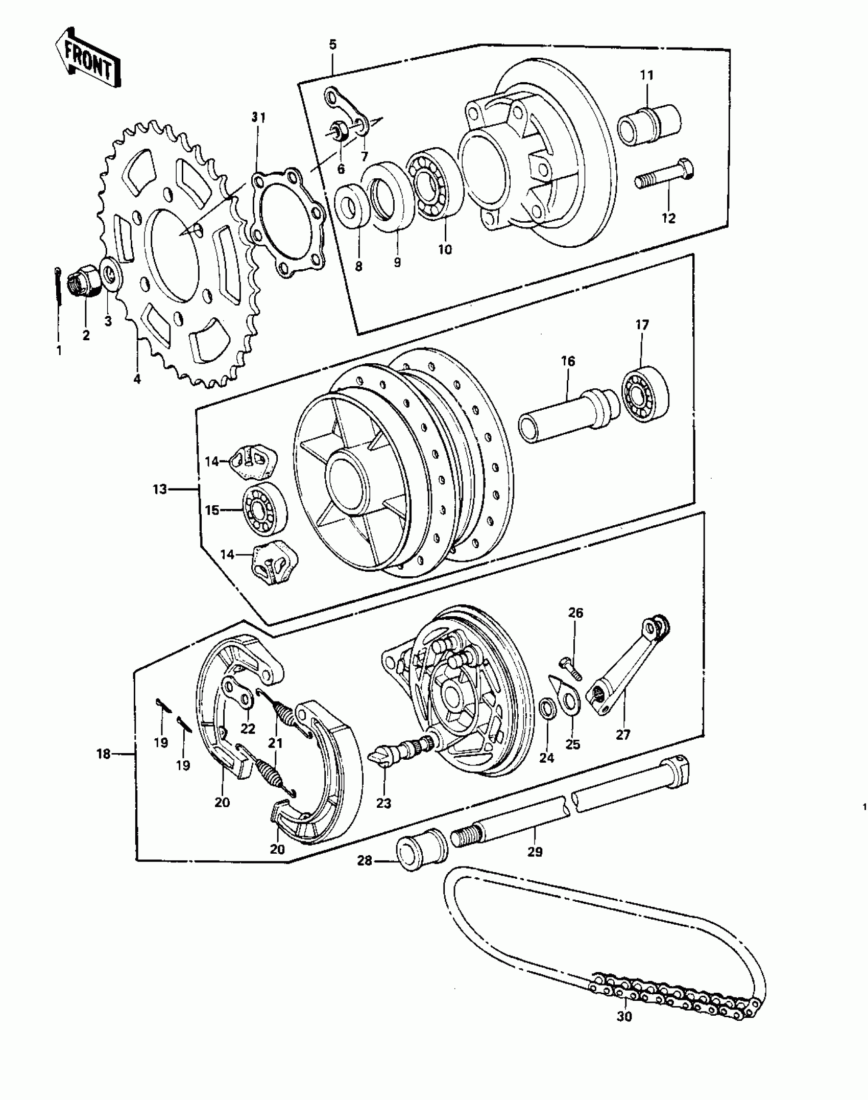 Kawasaki KZ900-A5 REAR HUB/BRAKE/CHAIN Diagram
