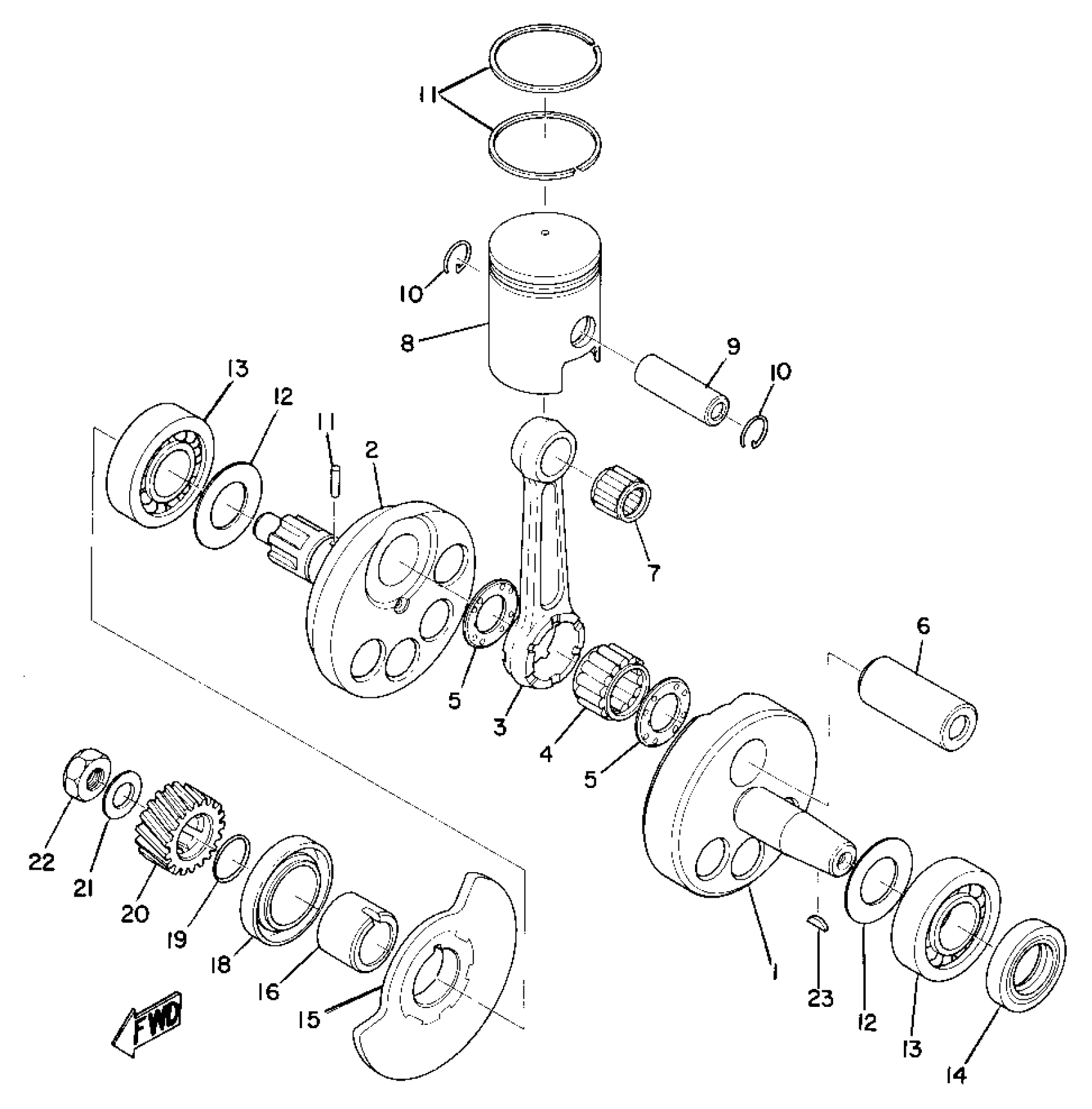 Yamaha L5T (L5T_L5TA) 1969 CRANK SHAFT & PISTON Diagram